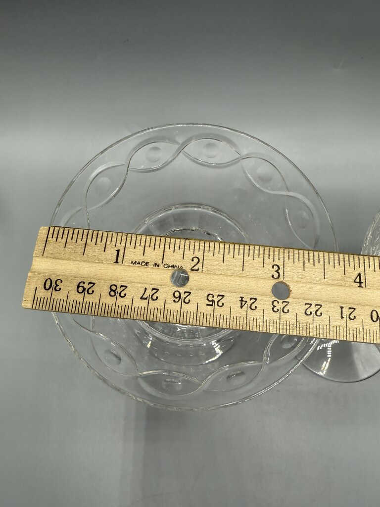 Set of 2 Libbey Rock Sharpe Crystal Champagne Glasses or tall sherbet glasses. Pattern is a wave and dot design. Measures 5.5” tall and 3.5” in diameter. No chips, cracks or cloudiness.