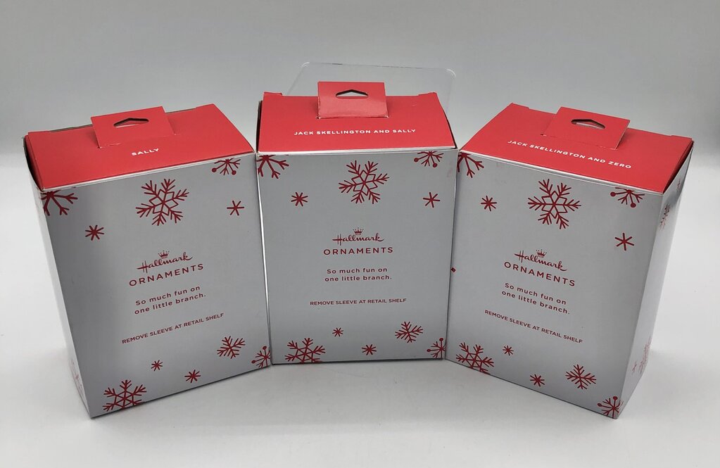 For the Tim Burton fan this Christmas, give the gift of Jack Skellington tree ornaments. Each are mint in box and never used. All come with original protective sleeve.