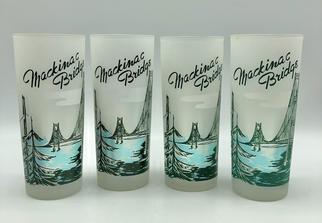 4 Vintage Mackinac Bridge Michigan Souvenir Glasses /b