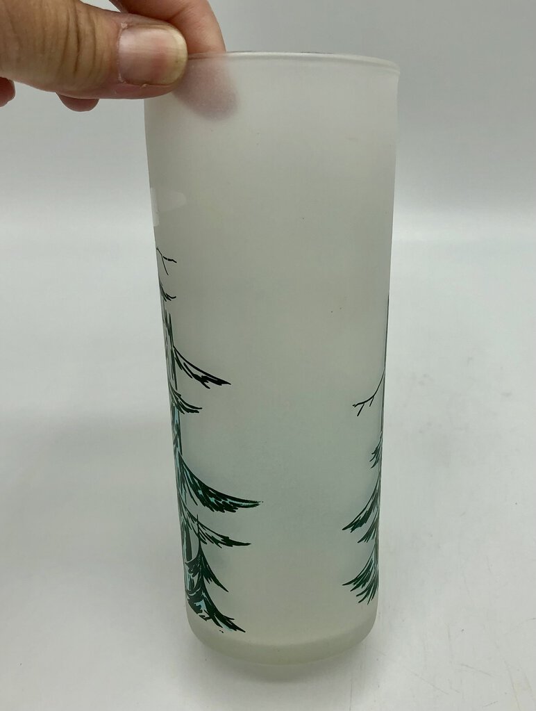 Each frosted glass measures 6 5/8” tall, holding 15oz of liquid.