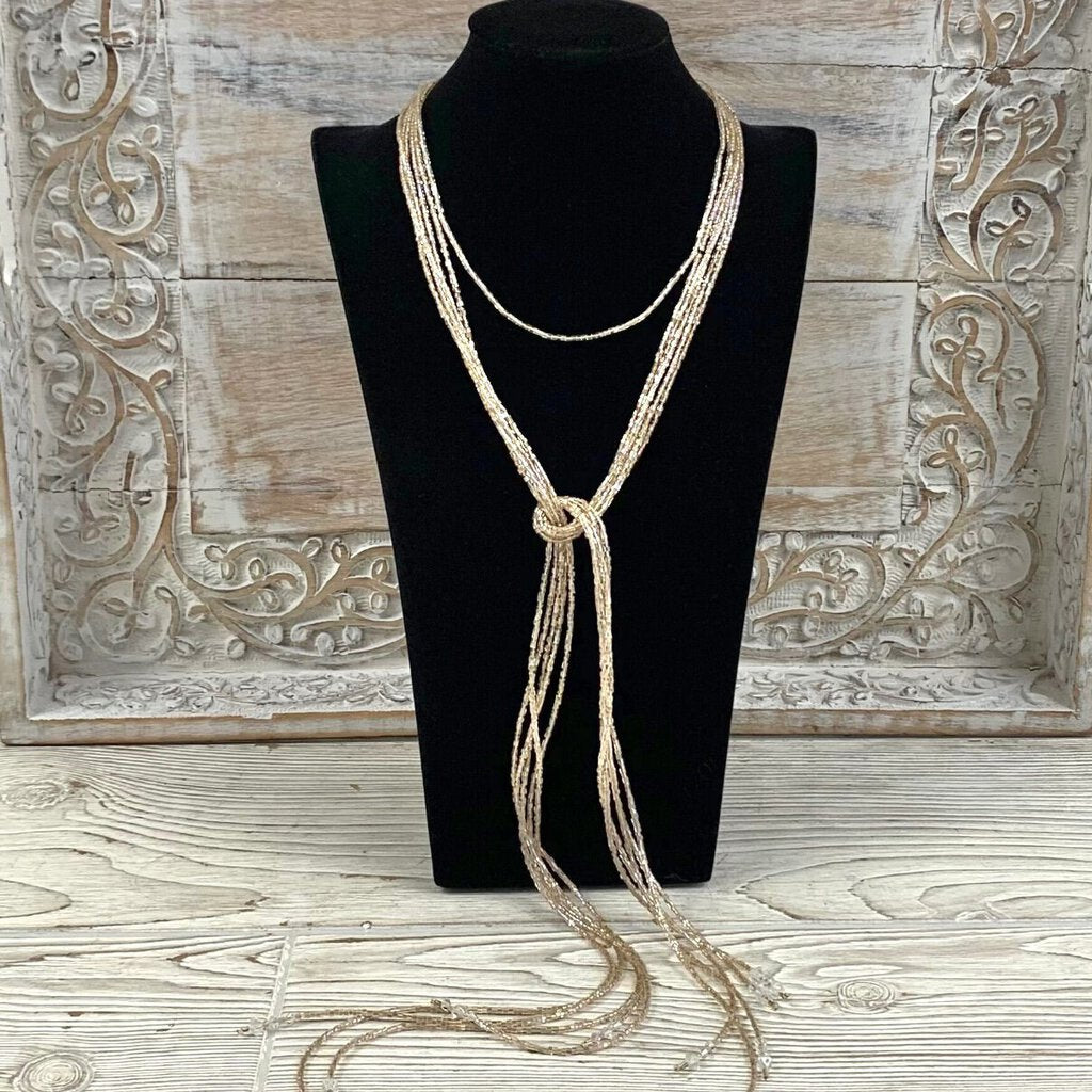 5 Strand Handmade Sparkling Glass and Crystal Lariat Necklace with Bonus Matching Stretchy Choker /cb