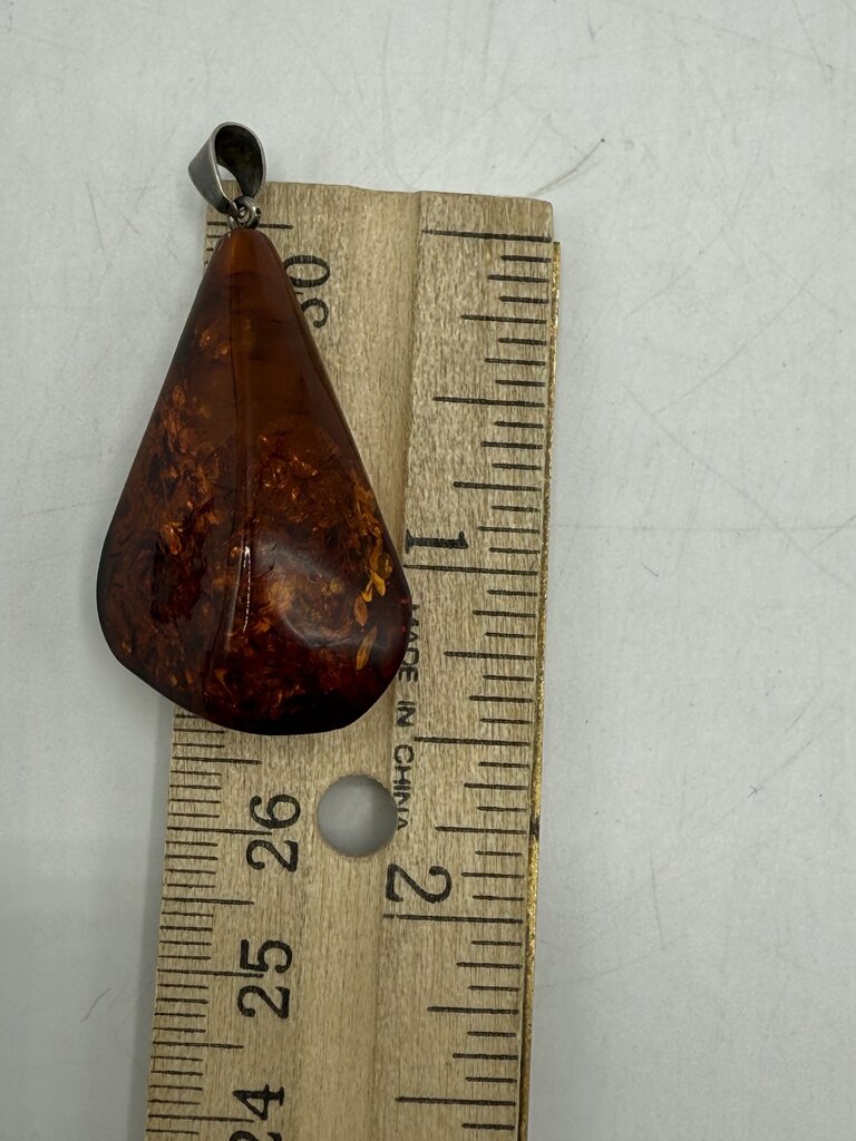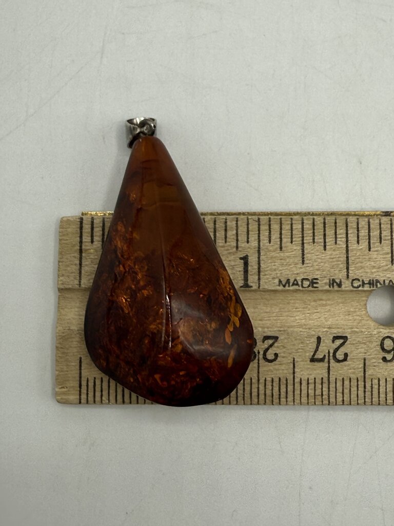 Amber Gemstone Pendant Silver Bail 1.5” x 1” /ro