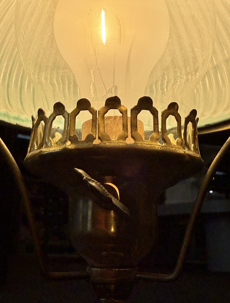 Antique Brass Oil Lamp Green Shade