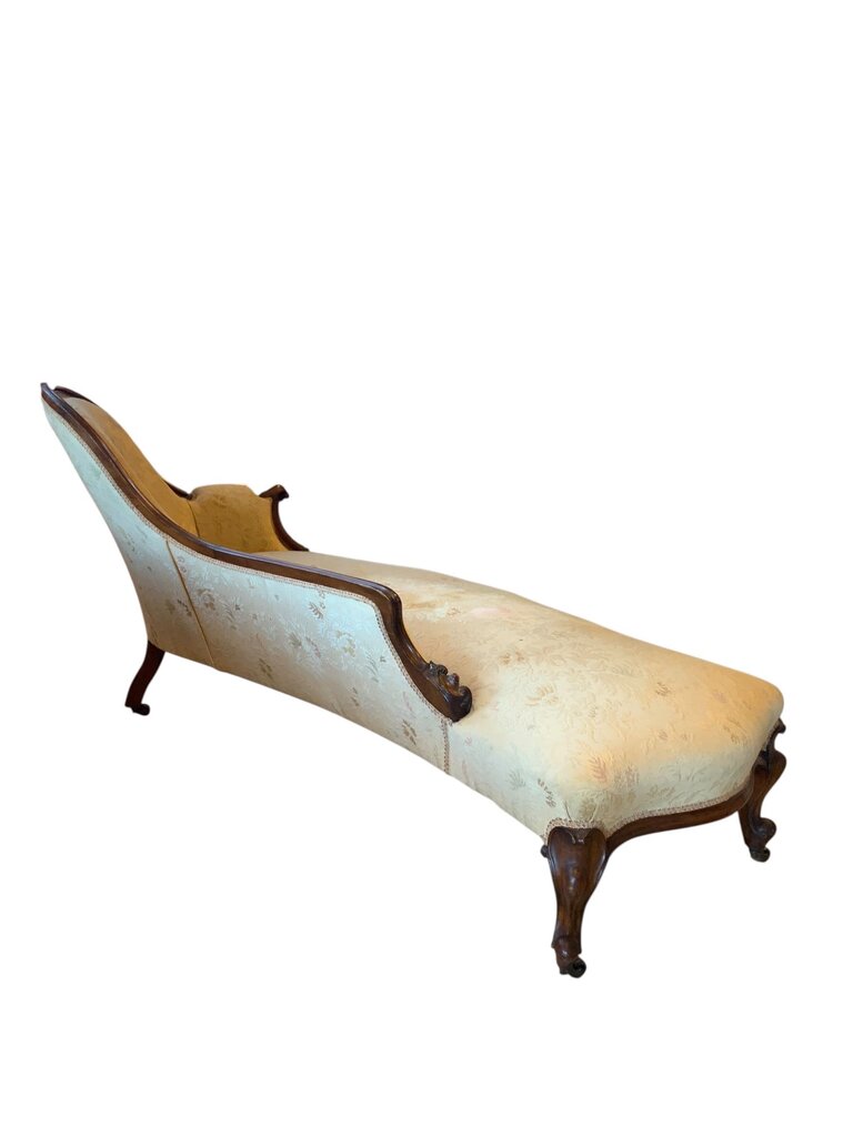 - This Antique Chaise Lounge Chair Has Beautiful Etched Wood Arms And Legs