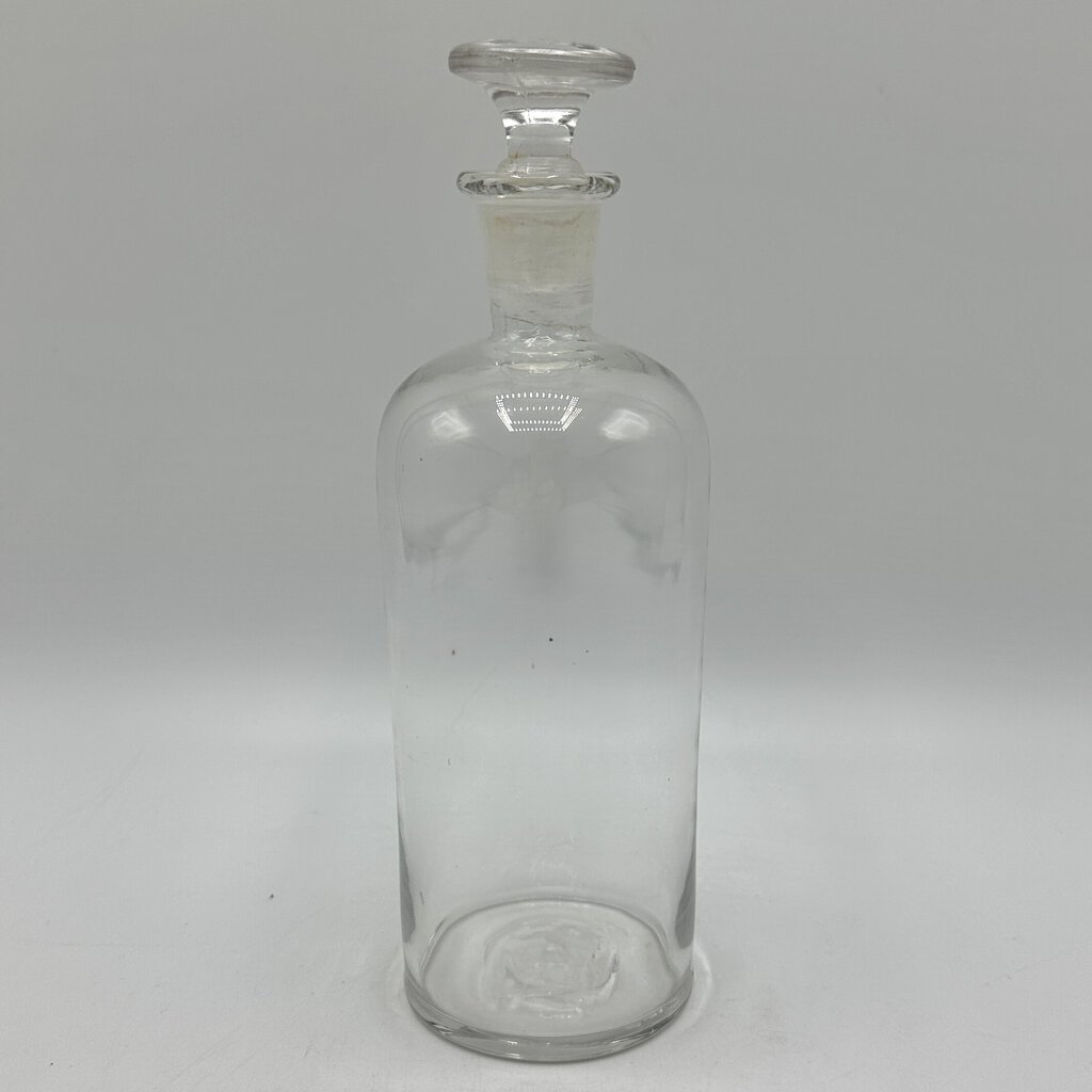 Antique mouth blown clear glass apothecary bottle with ground stopper. 7” tall including the stopper, with a 2 1/8” diameter. In very good antique condition no chips or cracks on bottle or stopper. This bottle is a beautiful addition to any collection. Please carefully review the photos for condition details and feel free to ask questions. Estate item. Condition is pre owned.