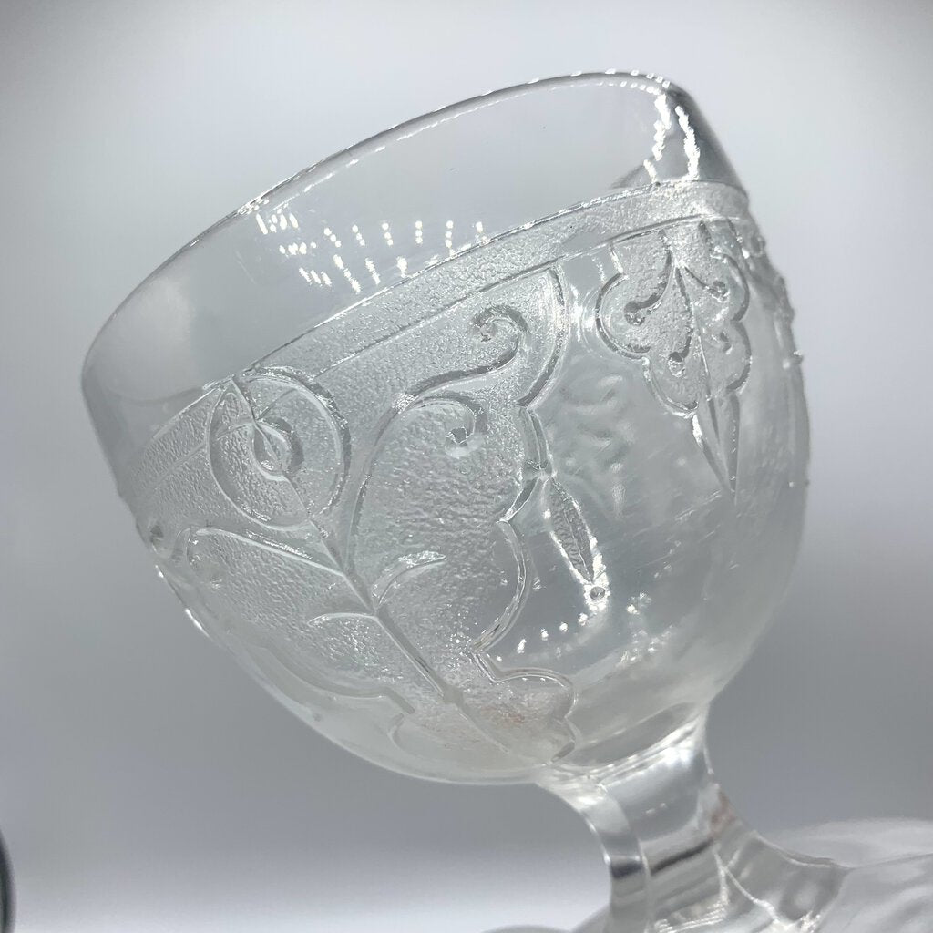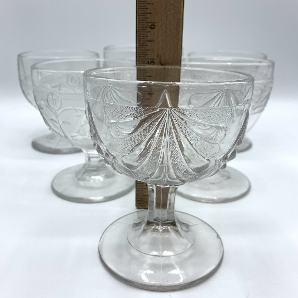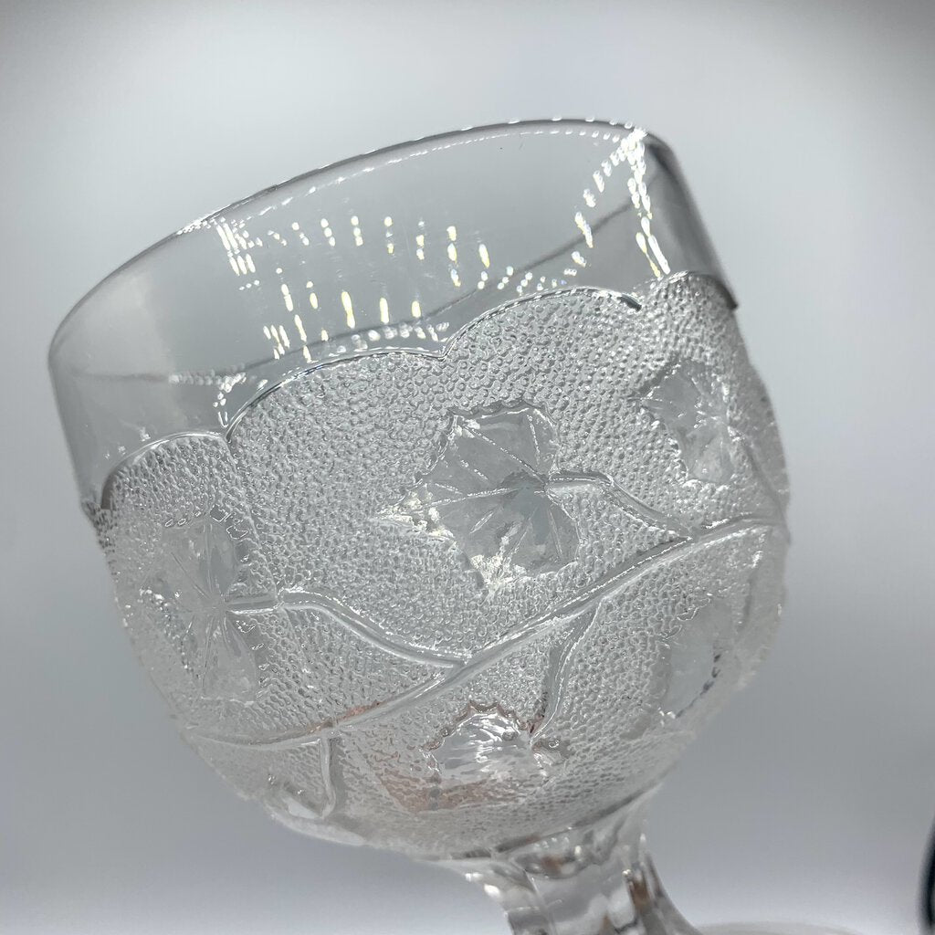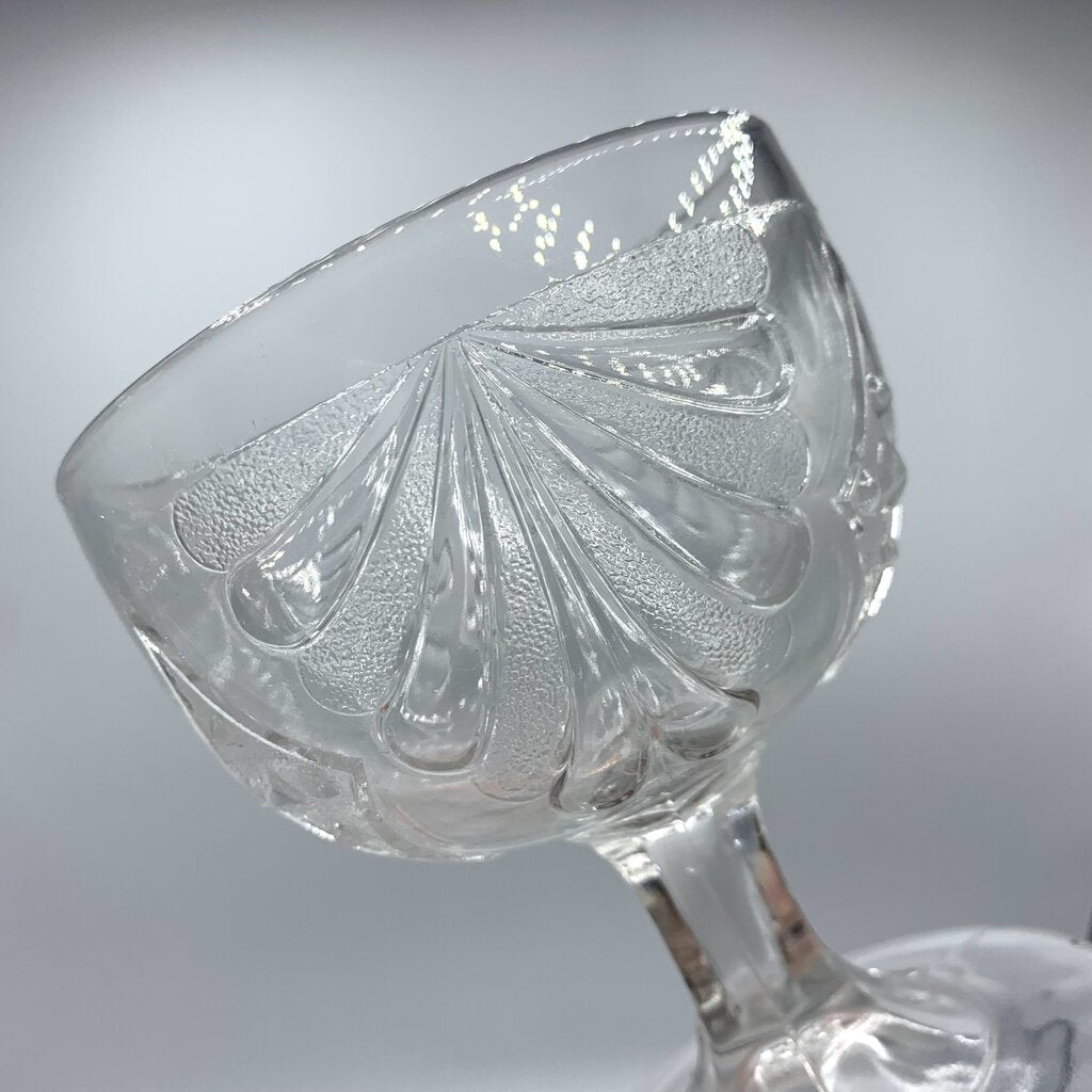 Unique set of 6 EAPG goblets. Upon researching them, I’ve seen them described as buttermilk goblets or pedestal sugar bowls missing their lids. Either way, they are lovely antiques from the later part of the 1800s, and each one features a different pressed pattern.
