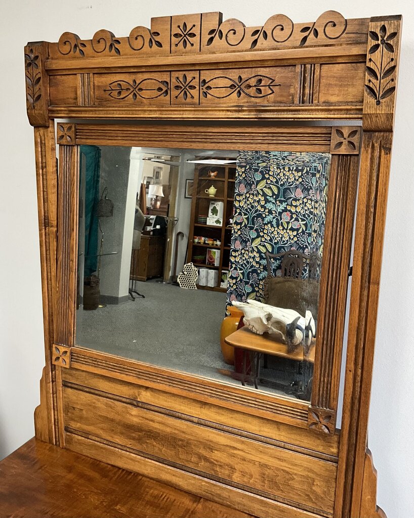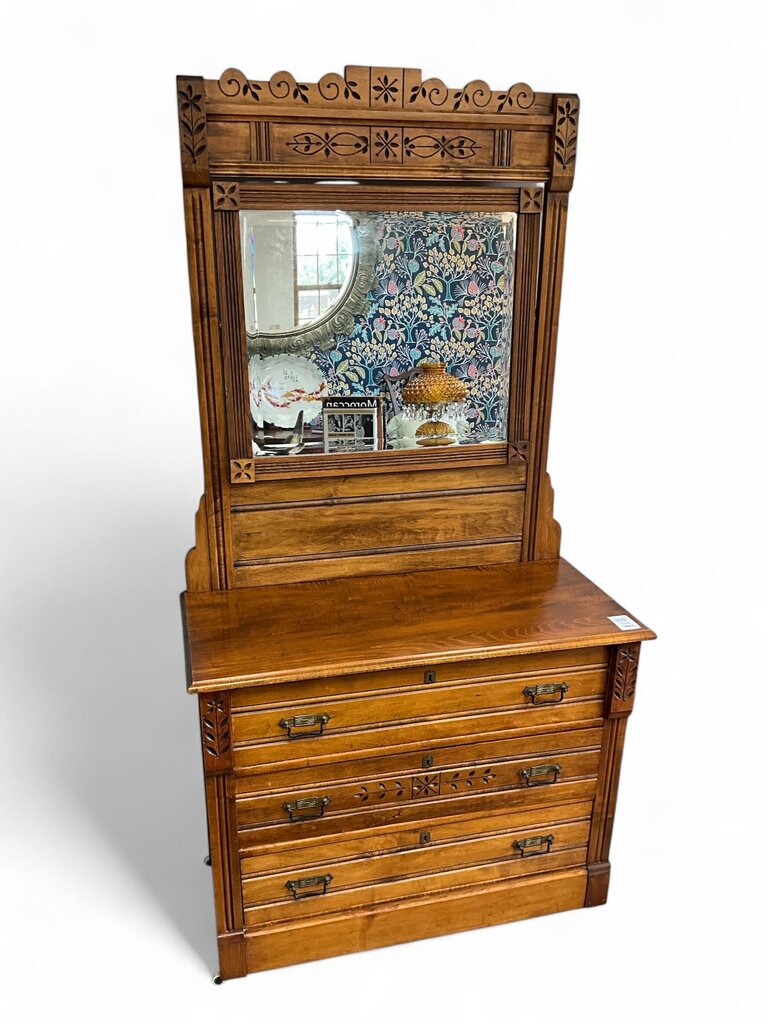 Antique Oak 3 Drawer Vanity w/ Mirror