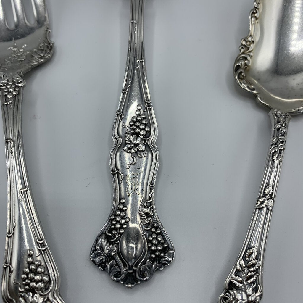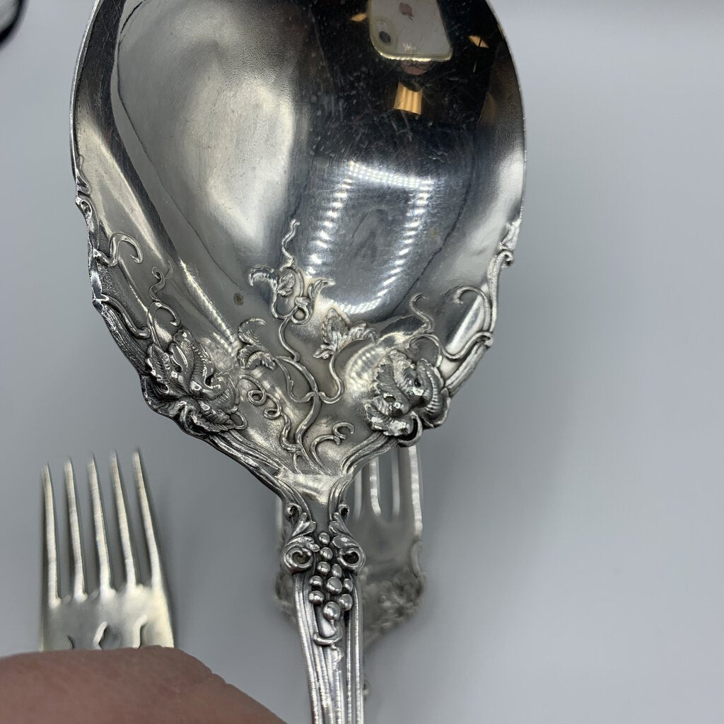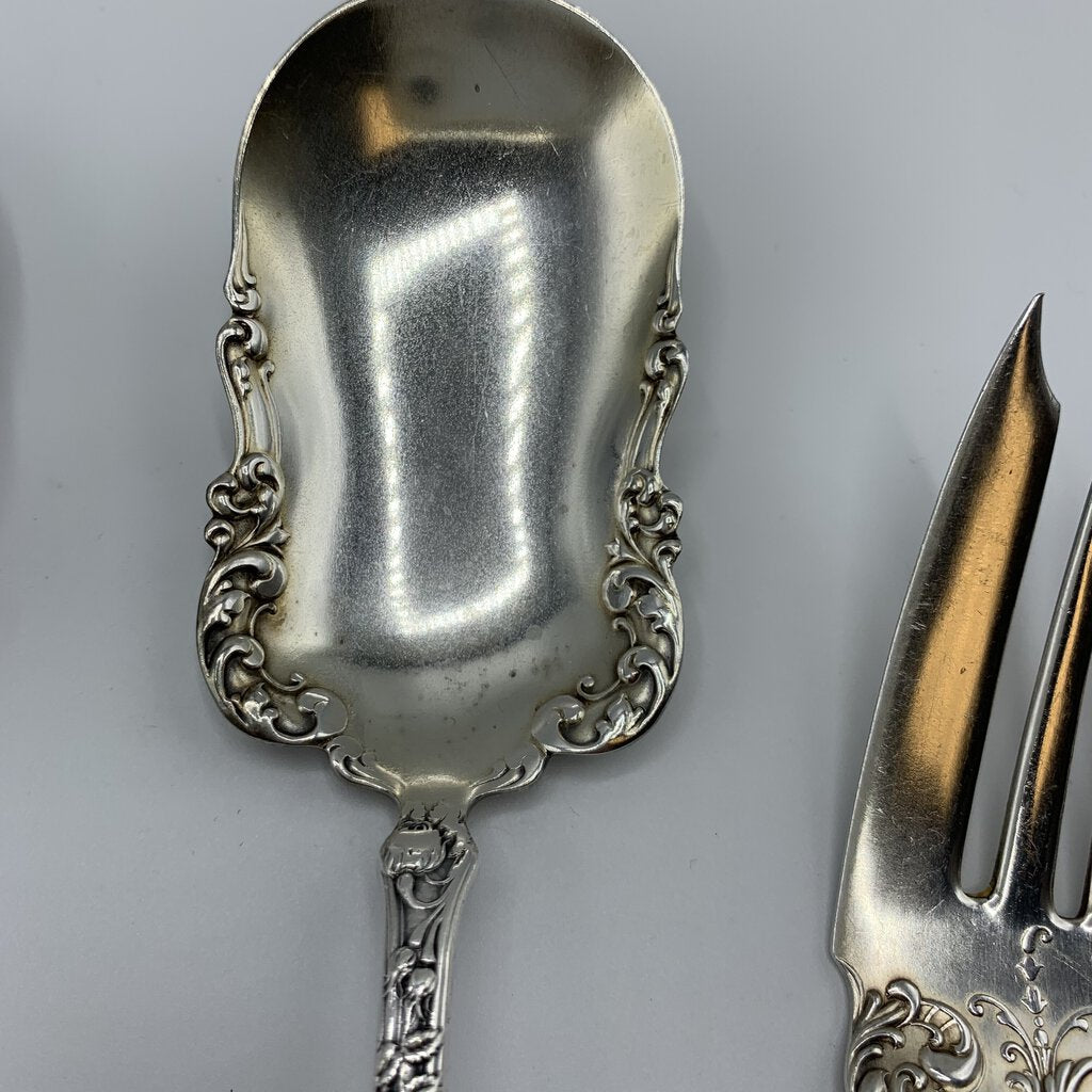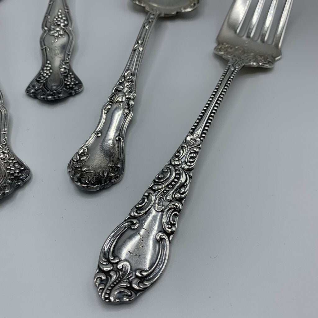 Beautiful and ornate set of 5 silverplate serveware utensils. These pieces will add a timeless elegance and really help to elevate your more formal tablescapes.