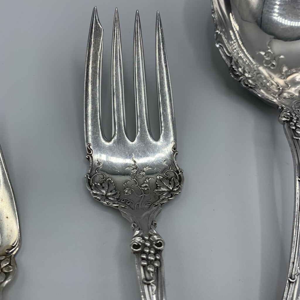 The serveware was estate-owned and is in excellent vintage condition. All pieces have a varying degree of patina, which adds to their aged vintage charm, but could be polished if preferred.