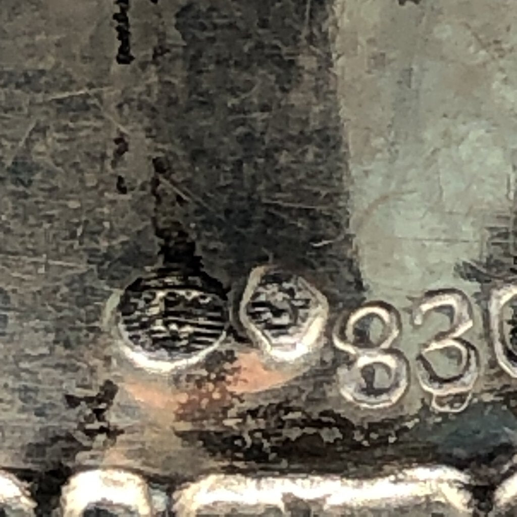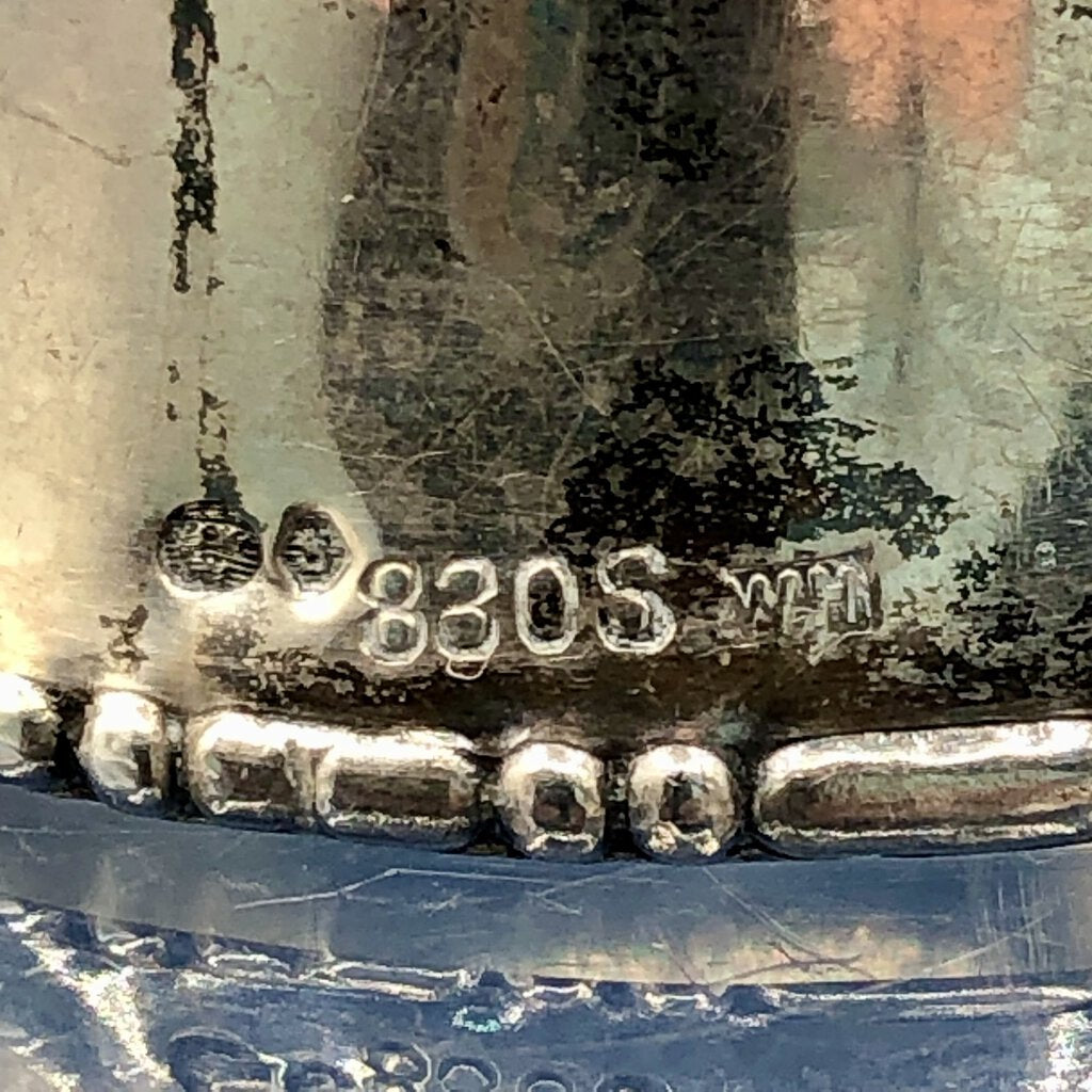 The backside is hallmarked with “three crowns stamp, Hexagon S, 830S, WH”.