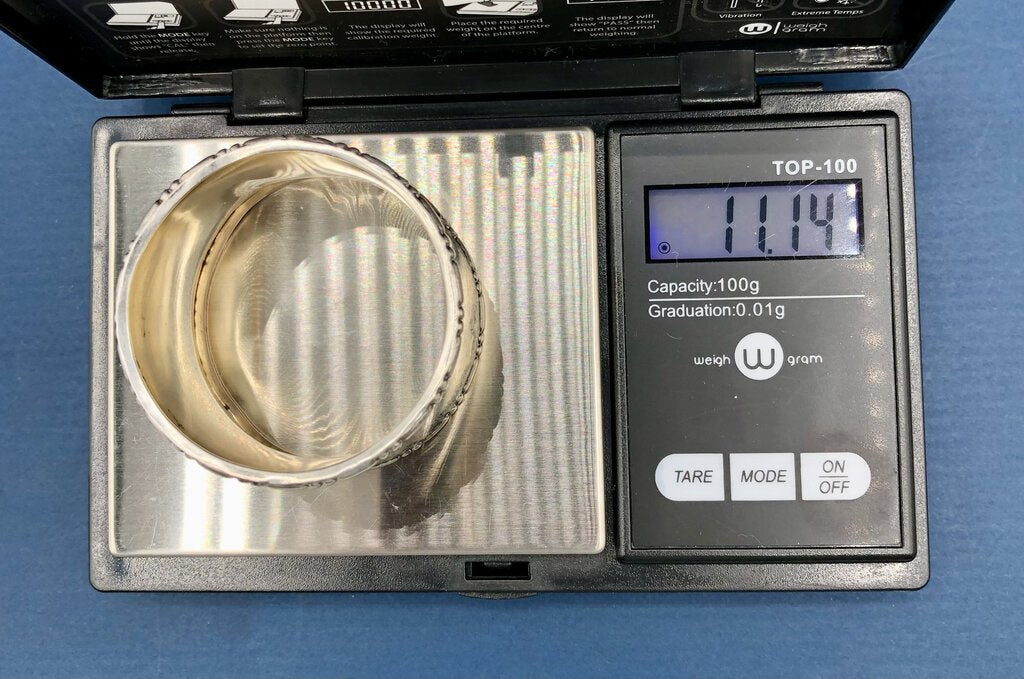 Ht 1 1/8” x Diam. 1 7/8”, weight 11.14 grams.