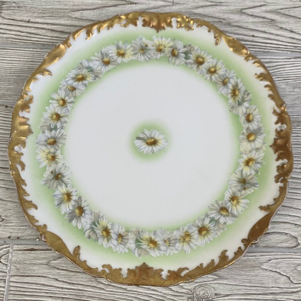Antique Tressemanes & Vogt Limoges 12.5 Inch Round Hand Painted Daisy Platter Made in France Pattern TRV122 /cb