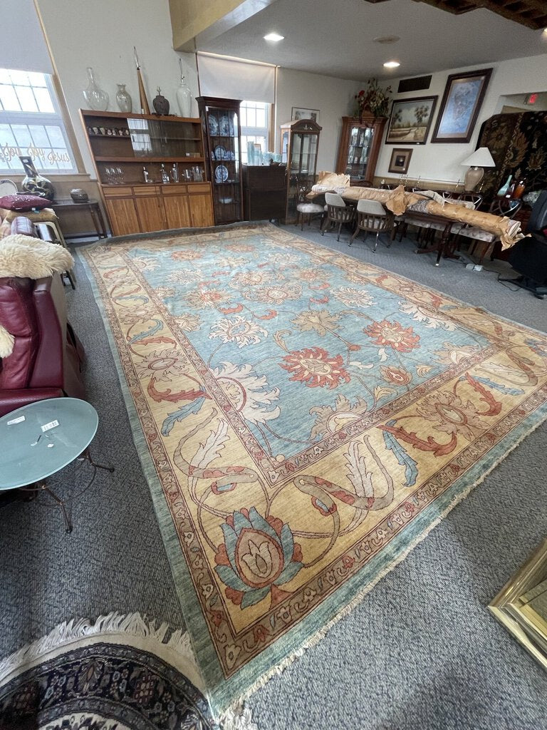 Description: This exquisite Arts & Crafts rug exemplifies the fine craftsmanship and aesthetic principles of the Arts & Crafts movement, which flourished from the late 19th to early 20th century. The rug is crafted from high-quality wool, providing durability and a soft, luxurious feel underfoot. Interwoven with the wool are delicate silk threads that add a subtle sheen and intricate detailing to the design. Design: The rug features classic Arts & Crafts motifs, characterized by geometric patterns and stylized natural forms. The design may include elements such as: Floral and Foliate Patterns: Inspired by nature, these motifs might include stylized flowers, leaves, and vines, arranged in a harmonious, symmetrical fashion. Geometric Borders: A series of repeating geometric shapes, such as squares, rectangles, or diamonds, may frame the central design, adding structure and balance to the composition.