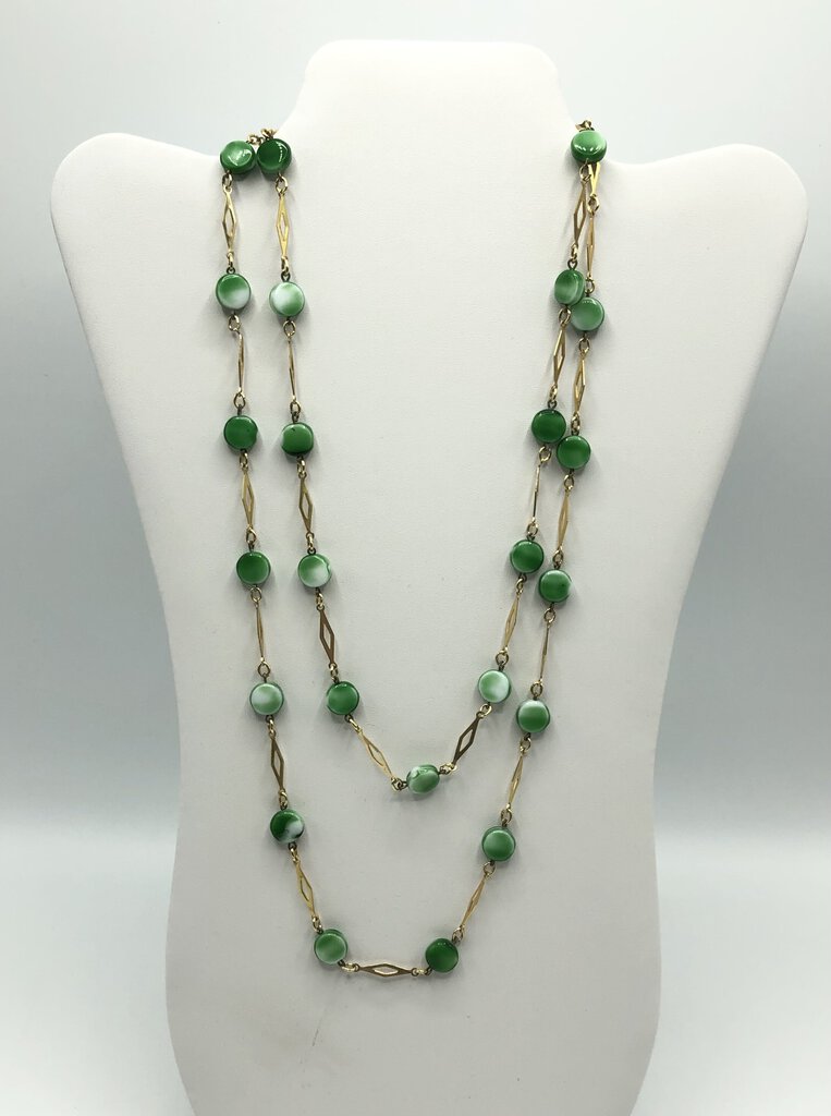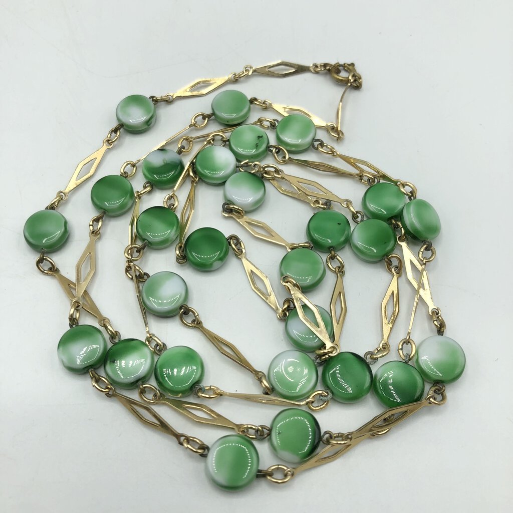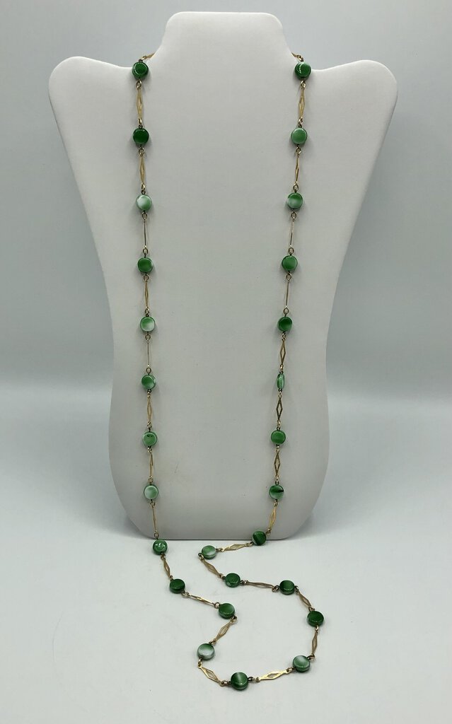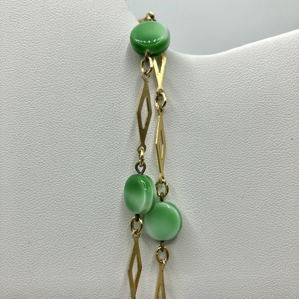 B/ Vintage Gold Tone & Green Bead Drape Necklace