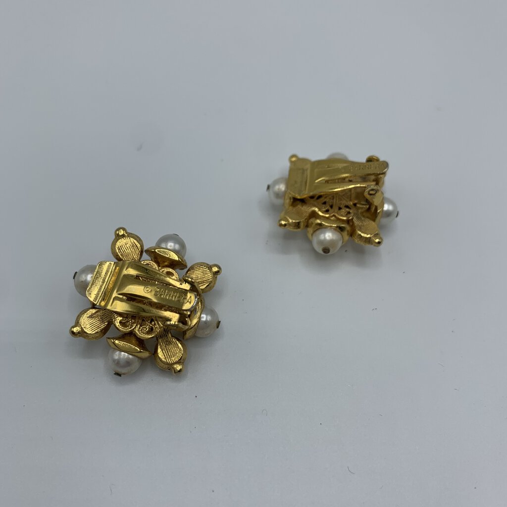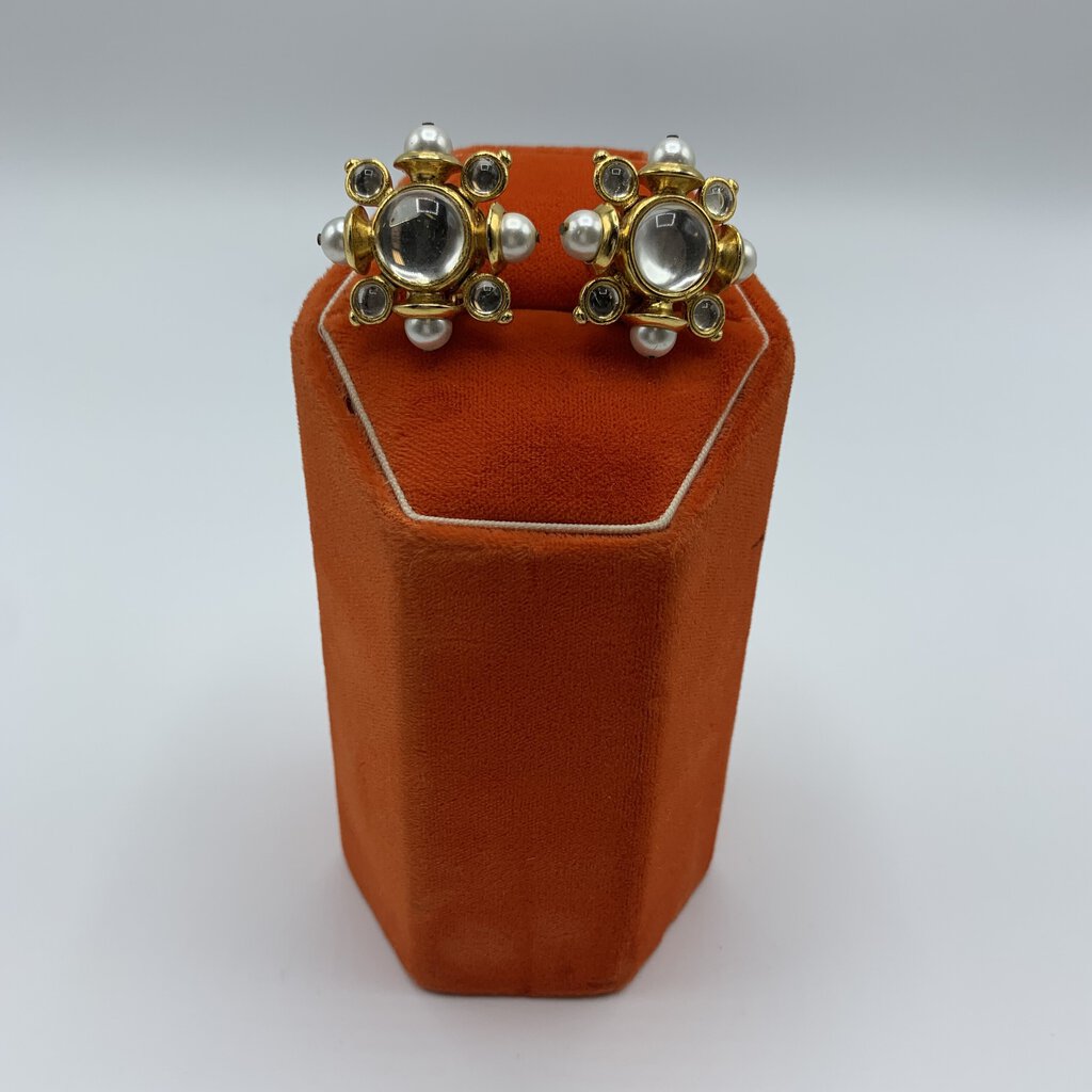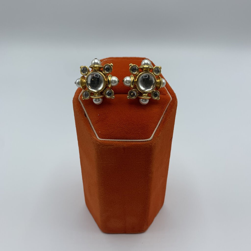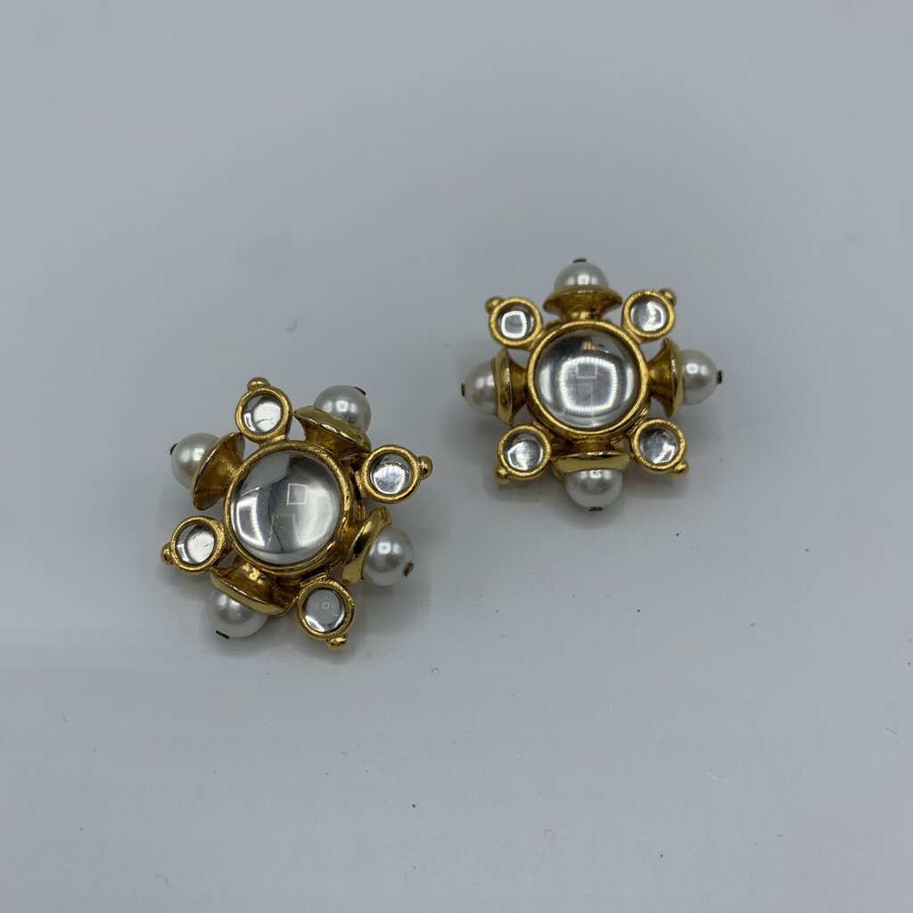 Barrera Domed Glass and Pearl Clip-on Earrings /hg