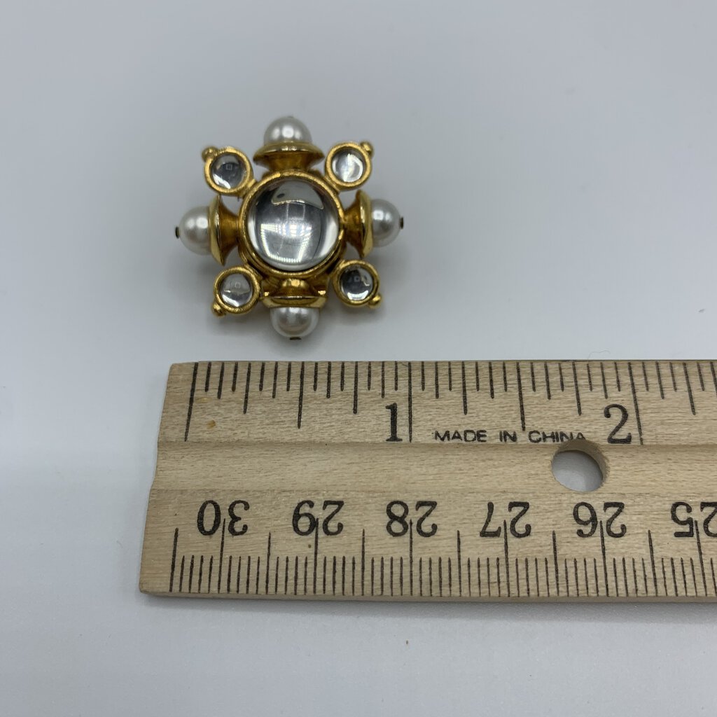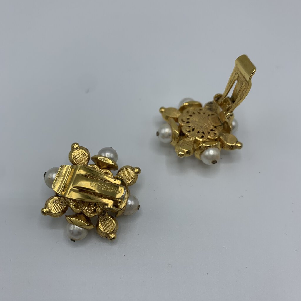 Gorgeous domed glass and pearl clip-on earrings made by Barrera. The clip-ons are a paddle-back style. These earrings will be perfect for the events in your life. They are understated and elegant.