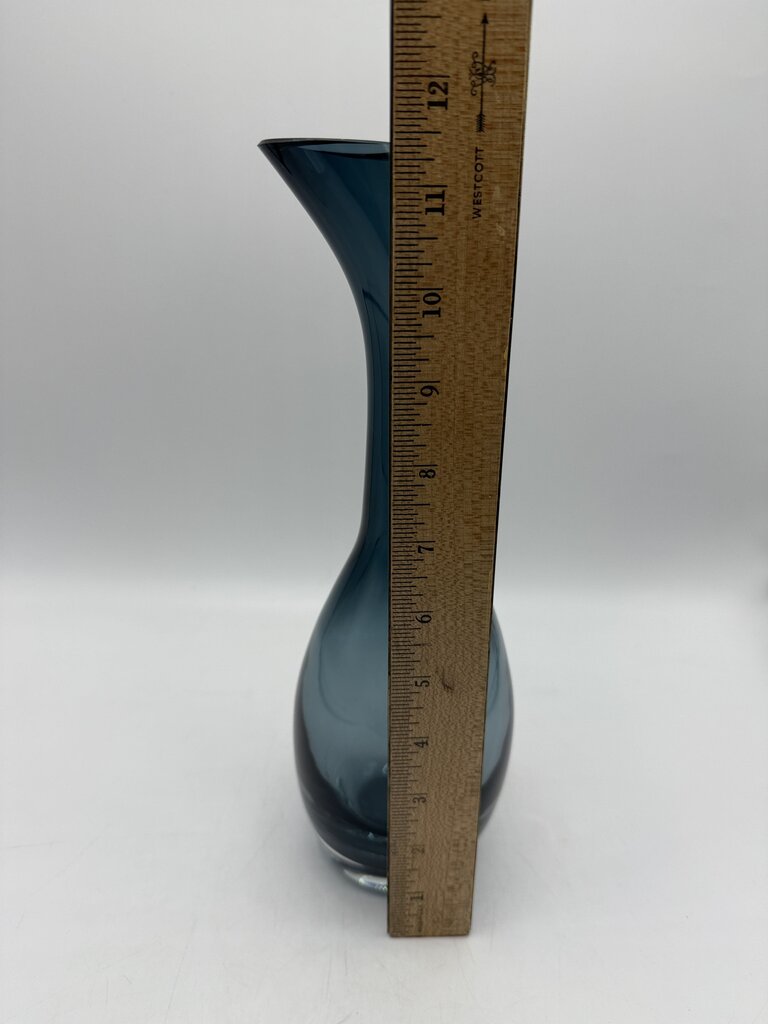 Blown Art Glass Goose Neck Vase Smokey Blue 11.5” /roh