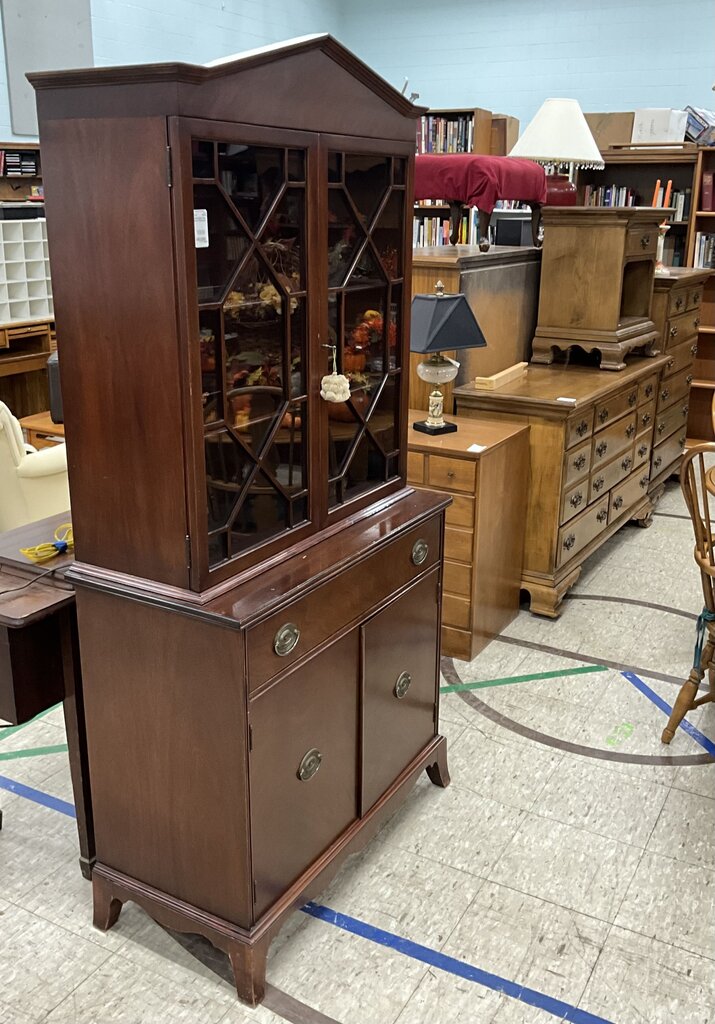 This server is in good condition and has no damage! There are two shelves that are both adjustable and we also have the key for the lock! One single drawer and the doors below open easily for more storage space!
