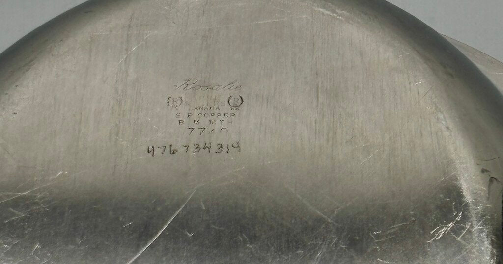 Beautiful silver plate covered oval vegetable serving dish. This Wm Rogers heavy silver plate was made in Canada. The pattern is Rosalie. The cover has an ornate handle which is removable so the lid can be used as an additional serving dish. It it pre-owned and has very little signs of use. There are 3 small spots in the bottom dish that show some silver loss.