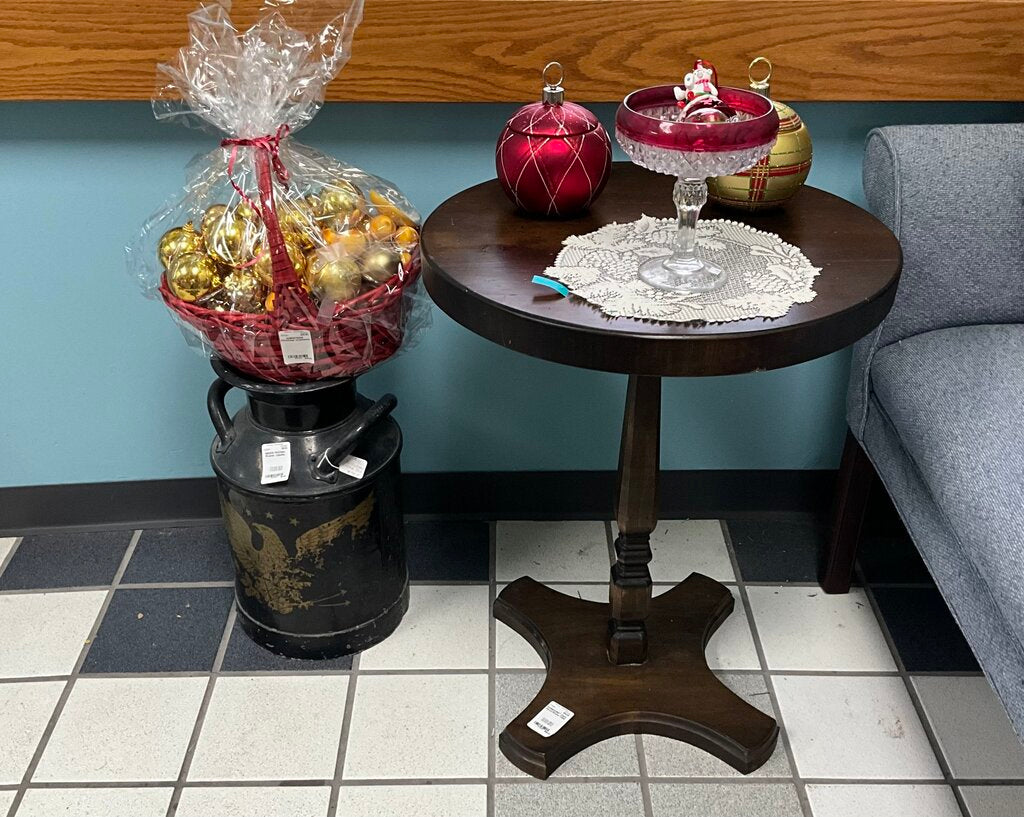 This table is in great condition and has no damage! Has a great dark finish over the piece and is nice and sturdy! Perfect for any home.