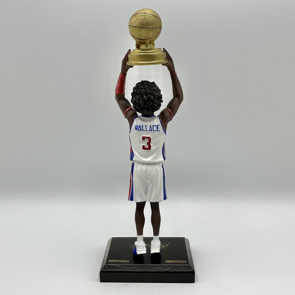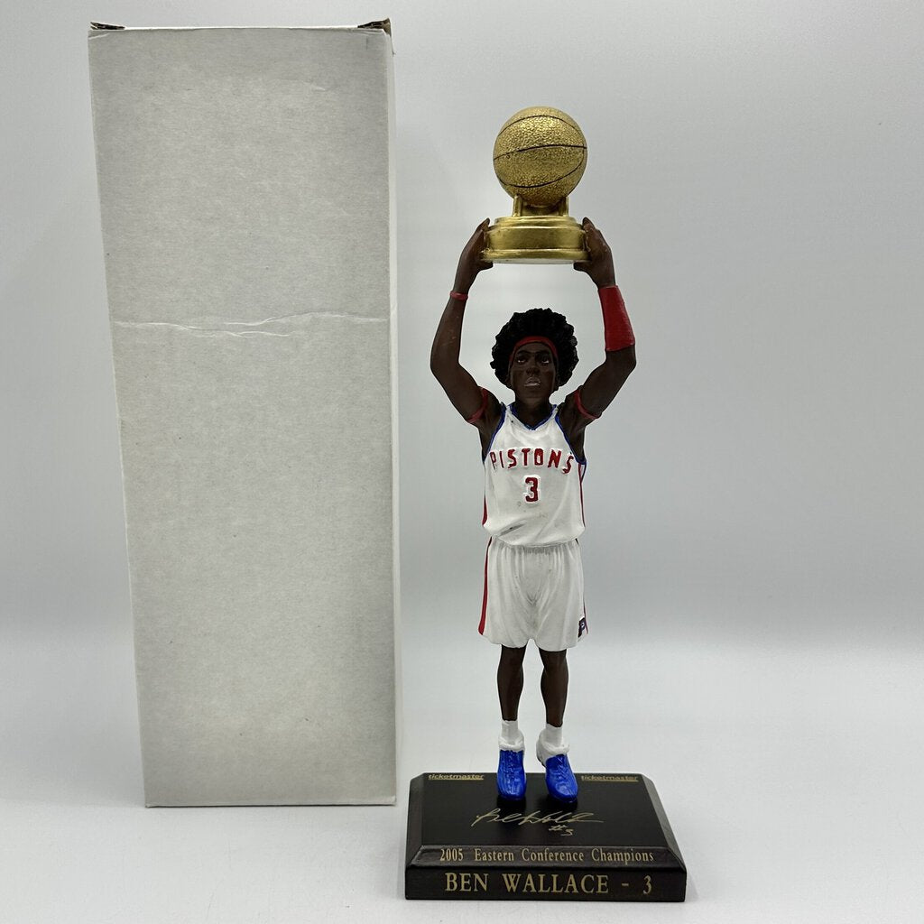 Detroit Pistons 2005 Ben Wallace NBA Eastern Conference Champions Figurine. This figurine is individually numbered 07464/10,000 and was a giveaway at a 2005 Detroit Pistons game. It features Pistons great Ben Wallace hoisting the Eastern Conference Championship Trophy. This figurine comes in its original box and packaging. 10 1/2” tall, 4 inches wide and 3 inches deep. In very good pre owned condition. The base has a few light scratches. Please see photos for details.