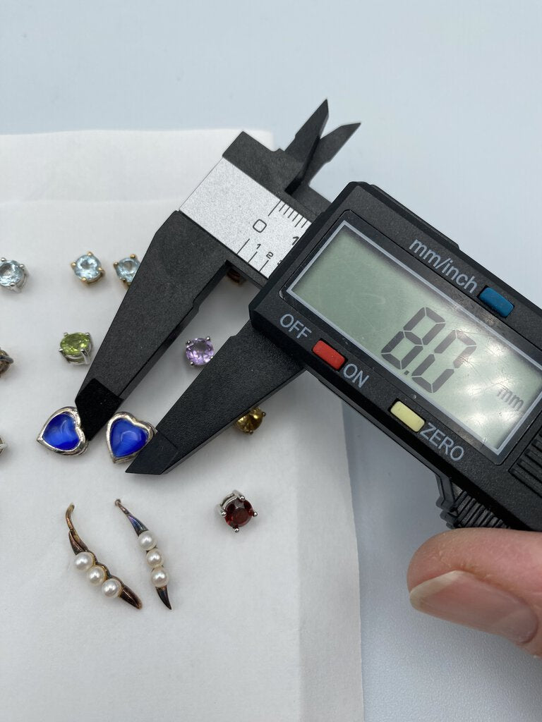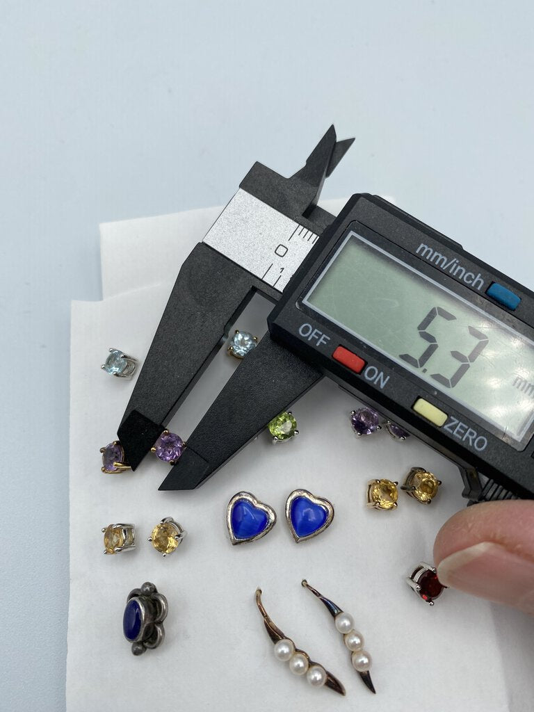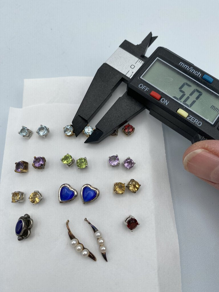 Estate Lot of 10 Pairs of Sterling Silver Gemstone Stud Pierced Earrings /ro