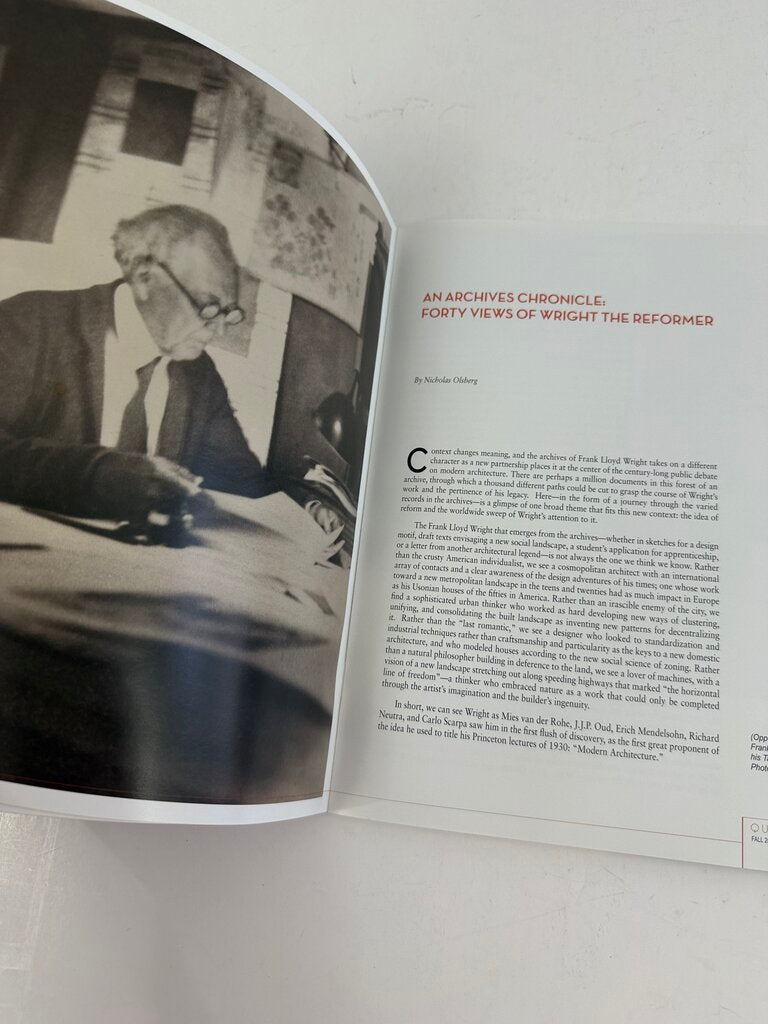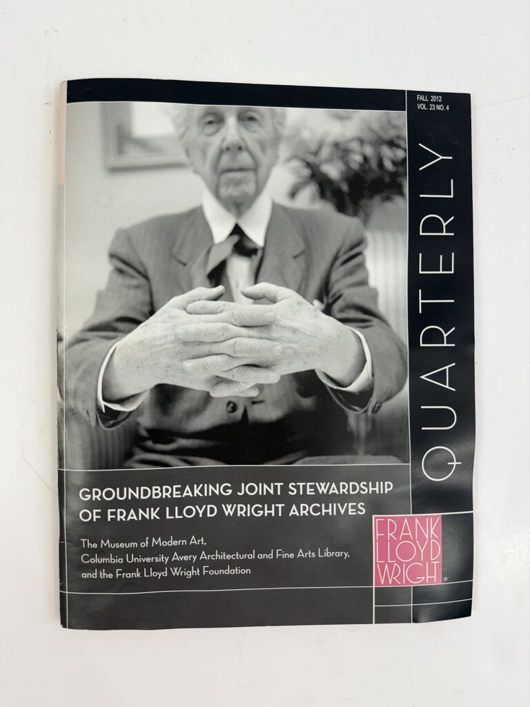 Set of two Frank Lloyd Wright Inspired Stained Glass sun catchers that measure 12” long by 6” wide. Also included is a Frank Lloyd Wright Quaterly magazine Fall 2012. One of the sun catchers glass panes does have a straight crack in the pane and is missing one of the hanging hooks. An attractive set of glass art.