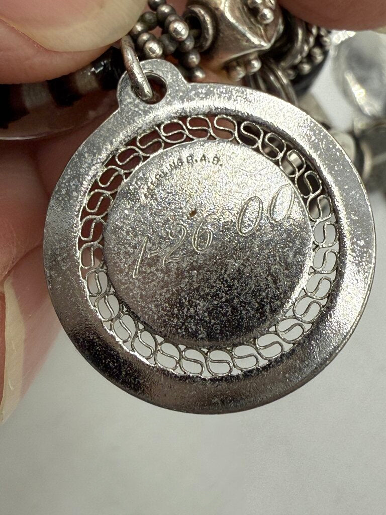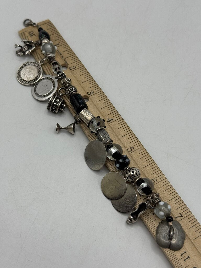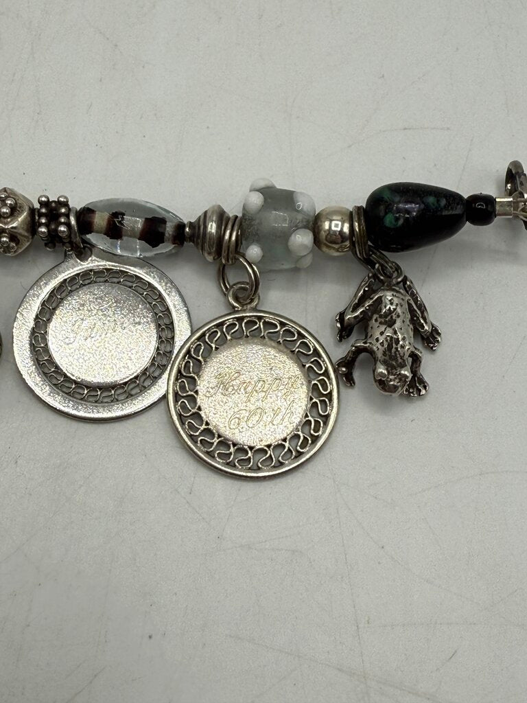 Glass Bead Bracelet & 10 Sterling Silver Charms 7” /ro