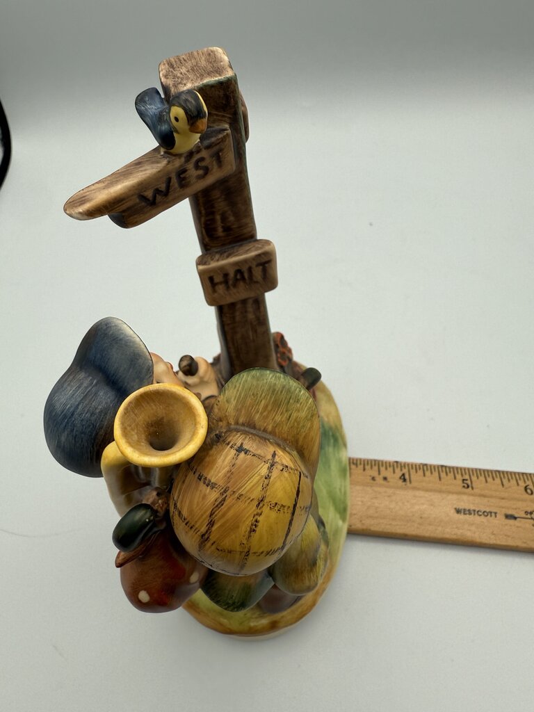 Experience the charm of Goebel M.J. Hummel collection with this figurine “Crossroads”. Two young boys stop at the crossroads sign deciding what path to take on their adventure. Figurine stand 6.5” tall with a 4.5” x 3” oval base. No chips, cracks or dust, clean and cared for by original owner.