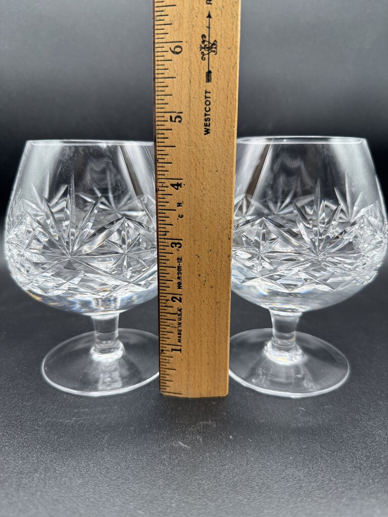 A beautiful set of 4 matching cut crystal Brandy Snifter Glasses. Measures 4.5” tall, 2.25” opening and weight of approximately 12 ounces each. Quality set, no chips, cracks, scratches or cloudiness. Capacity is a comfortable 4 ounce pour.