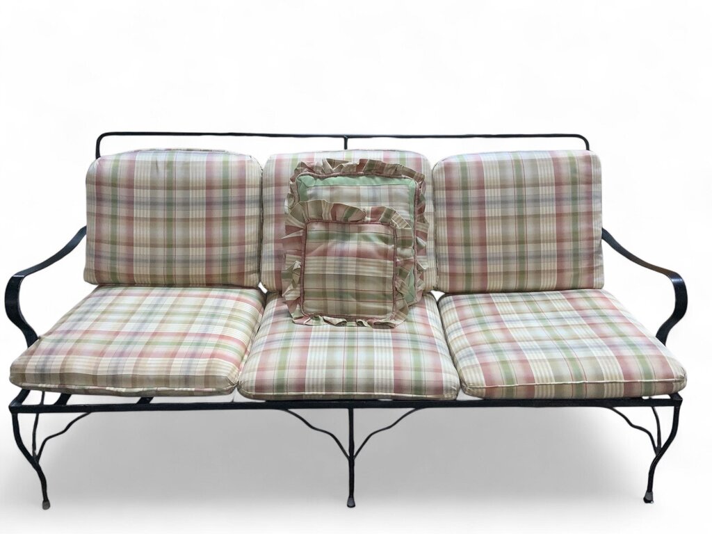 Green And Pink Upholstered Wrought Iron Bench Couch