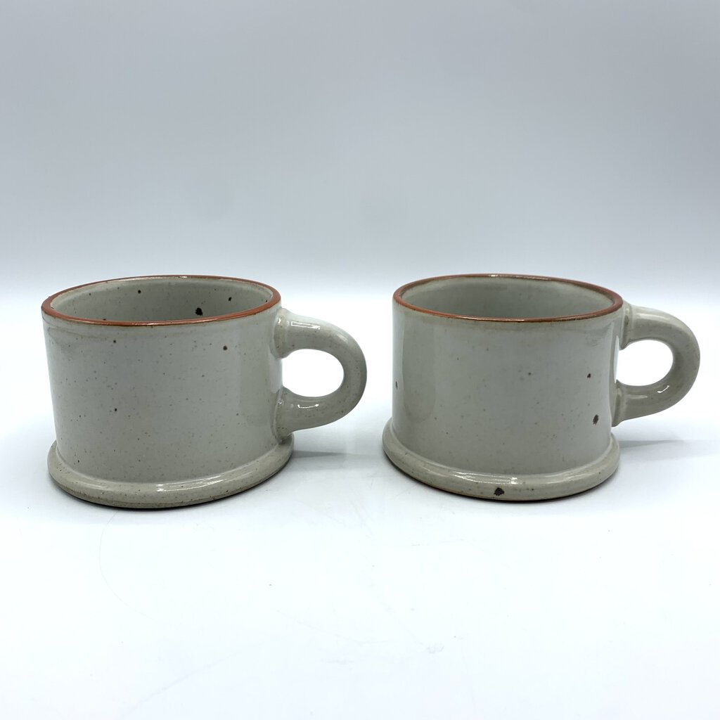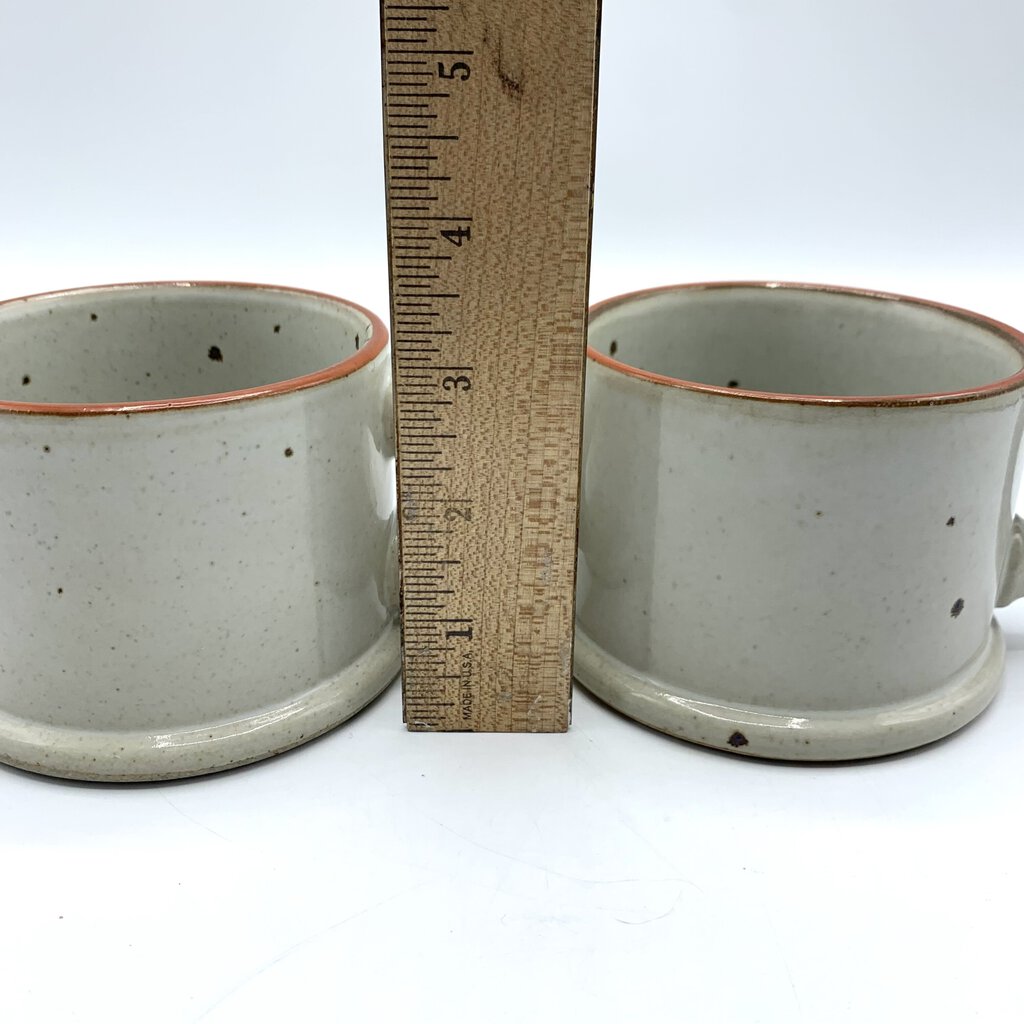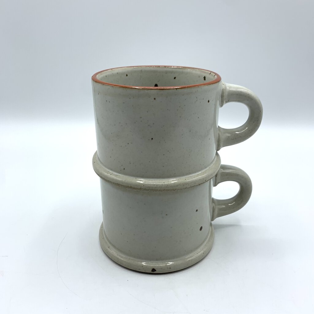 Nice simplicity to the design of these earthy mugs made by Dansk. The pattern is called BLT Ruststone and was originally designed by Nels Refsgaard in the late 1060s. The pattern was made from the late 1960s-1970s, and was discontinued in the early 1980s. The mugs have a good weight and hand feel to them, and really give off cozy MCM Scandinavian vibes.