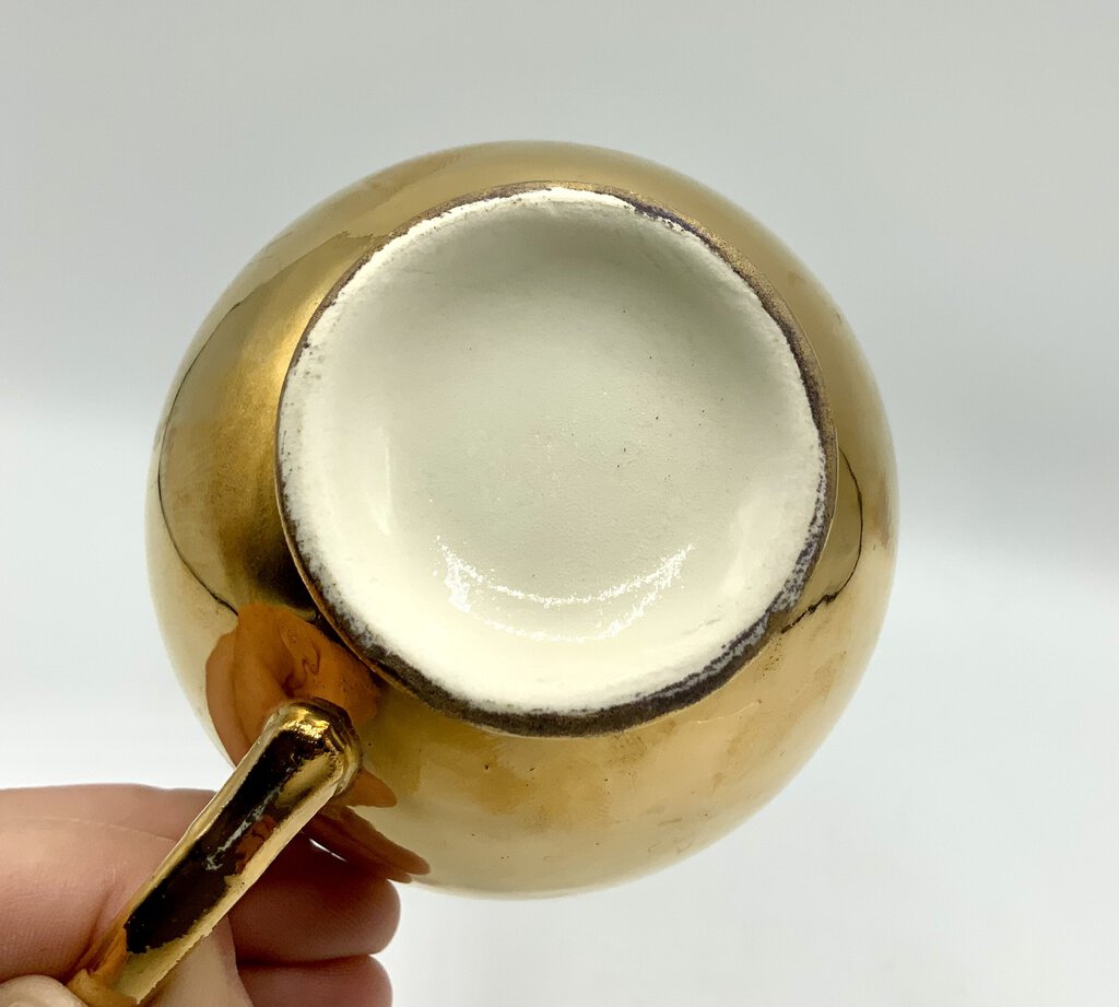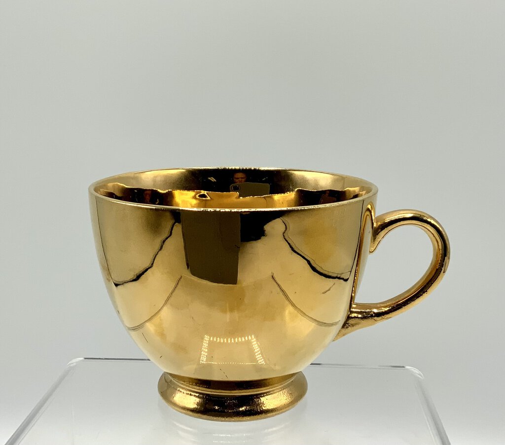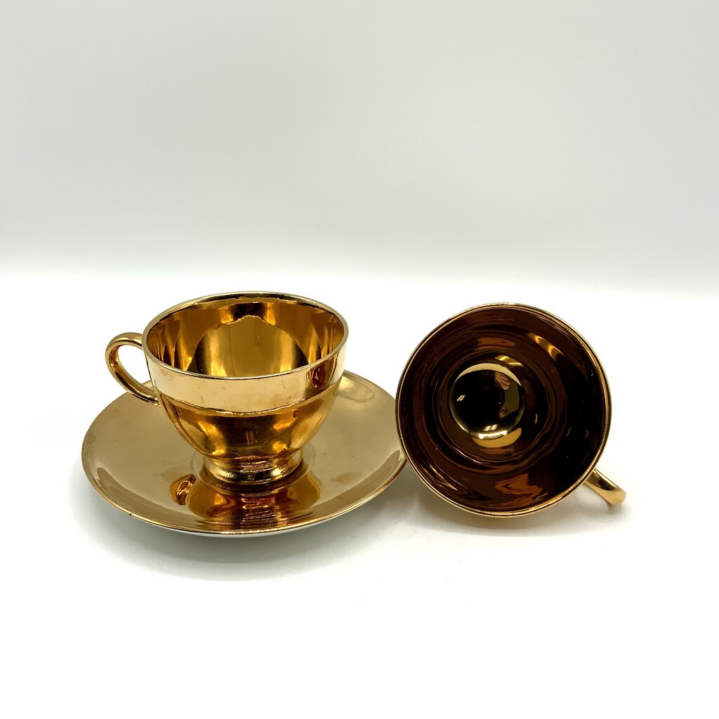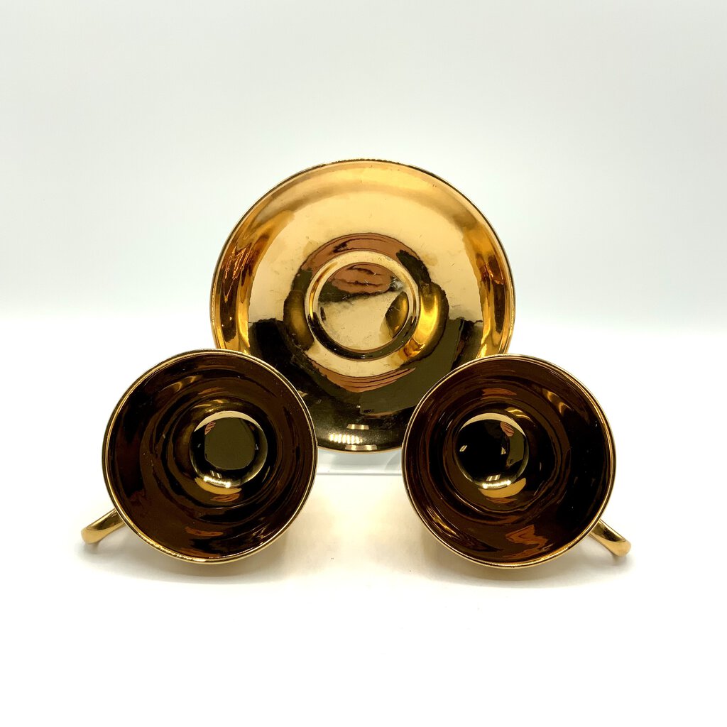 Beautiful copper colored Geo H. Bowman & Sons set of 3 tea cups and matching saucer. The saucer has some minor utensil wear and one of the tea cups has a small scratch. No chips, or cracks. These tea cups would be great for tea parties, everyday use or for display.