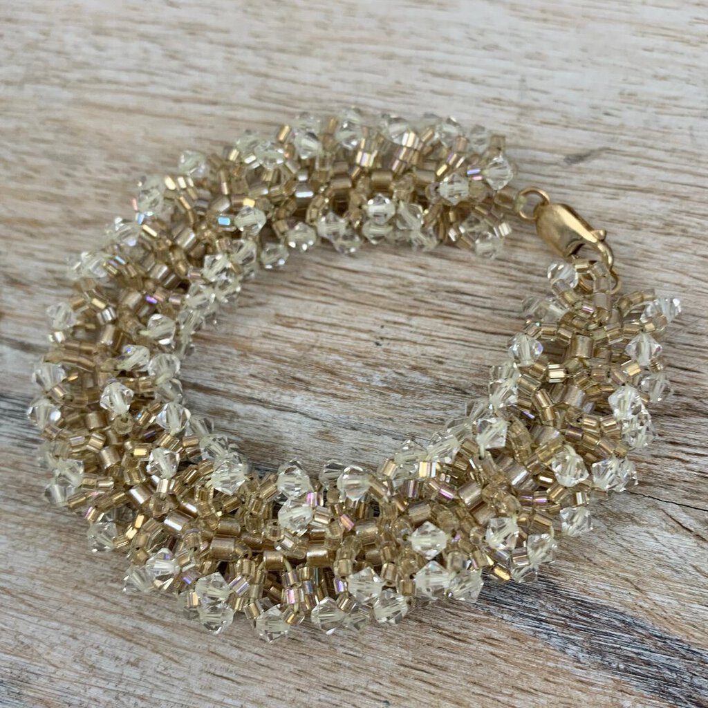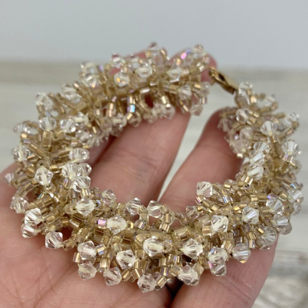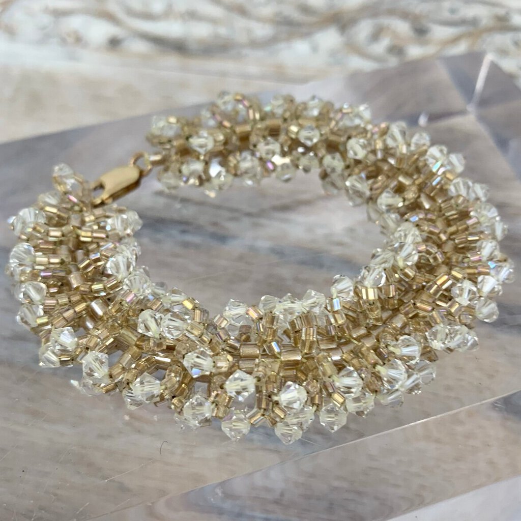 Intricate Handmade Sparkling Glass and Crystal Beaded Bracelet /cb