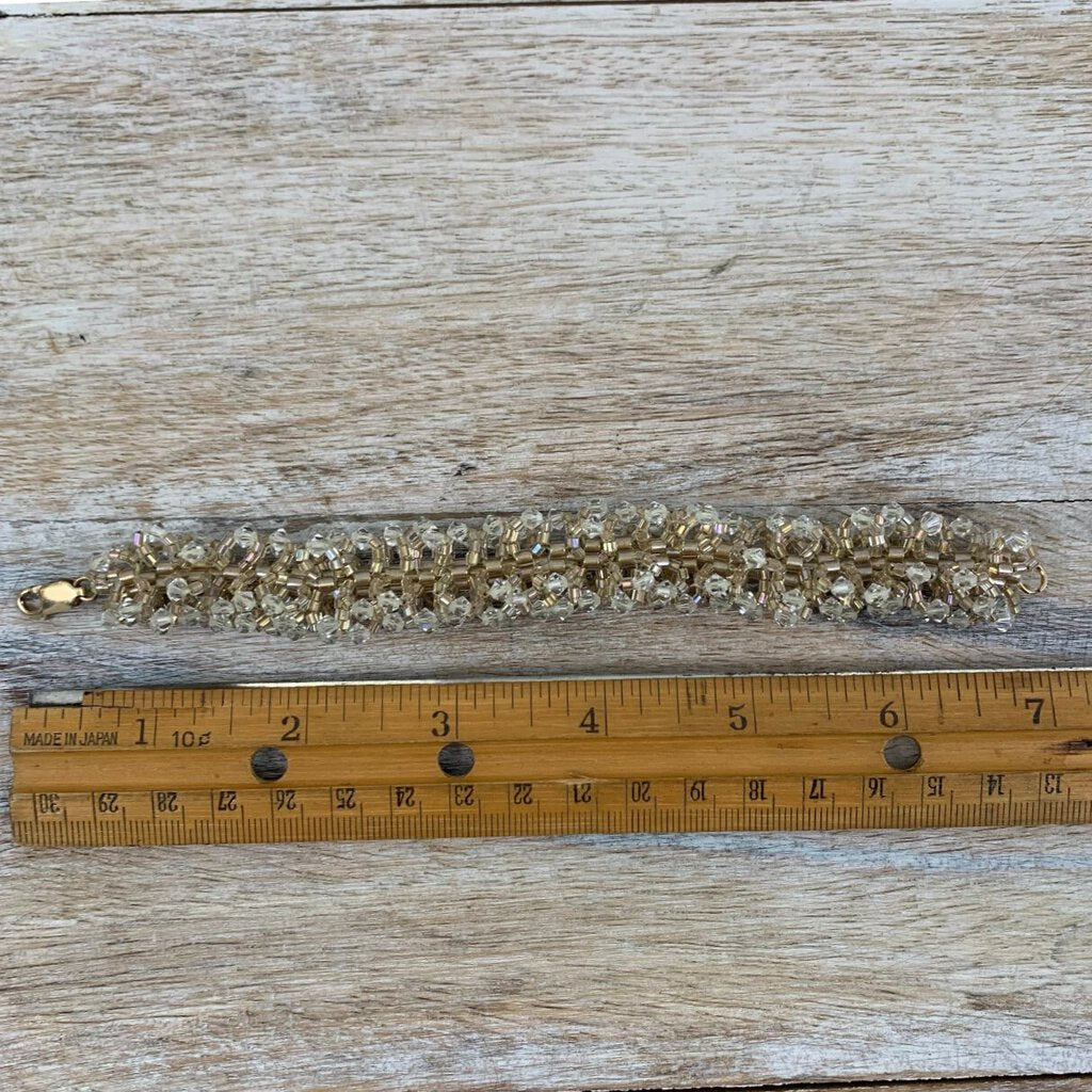 So much sparkle to this stunning glass and crystal beaded bracelet. It’s handmade and many many hours went into the painstaking beading. It’s simply gorgeous, and the pictures don’t do it justice as there is so much more sparkle than the pictures convey. It has a lobster claw closure that is working properly and feels secure. The bracelet was estate-owned and is in excellent condition. No issues found. Take a moment to view the pictures for further condition reference. It measures about 7” from end-to end.
