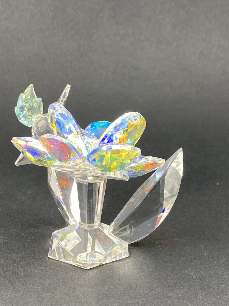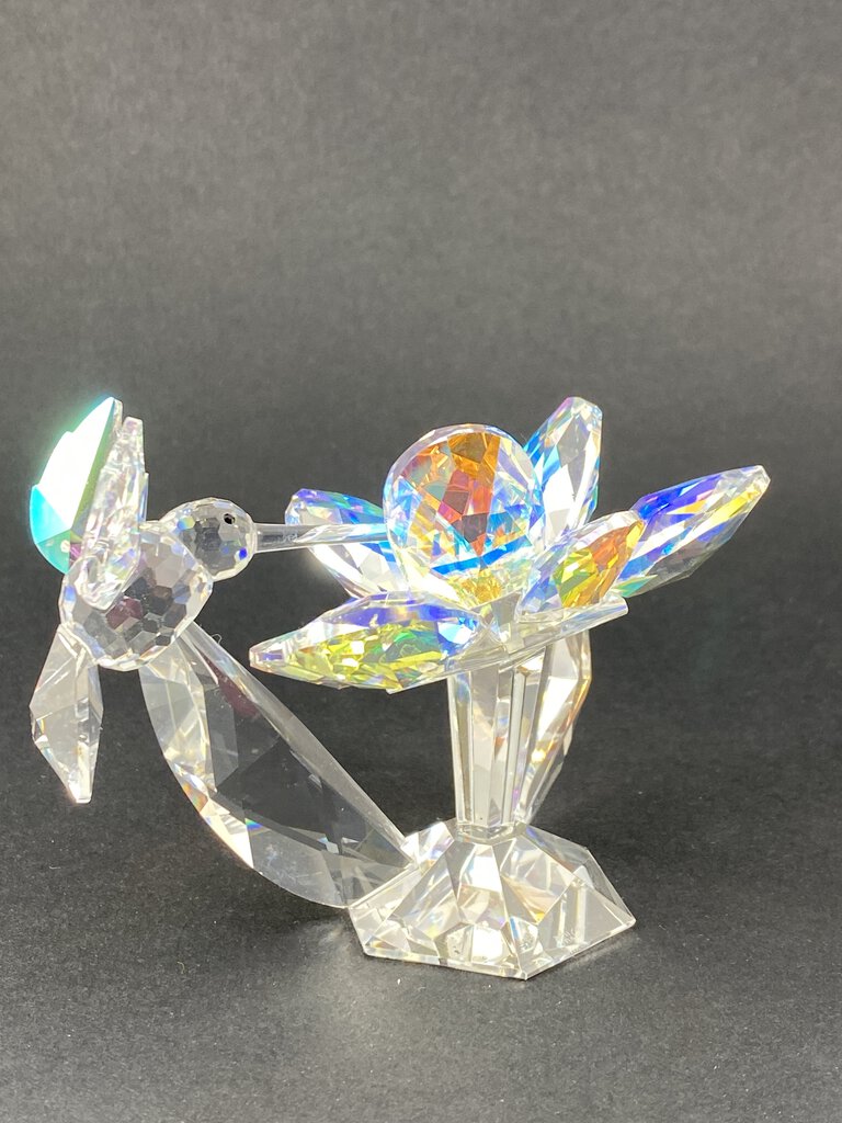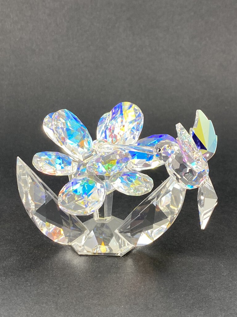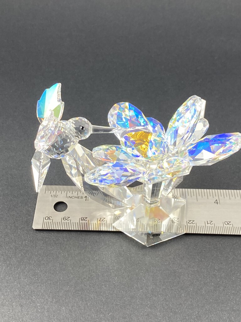 Iris Arc Iridescent Crystal Figurine Hummingbird on Flower /ro