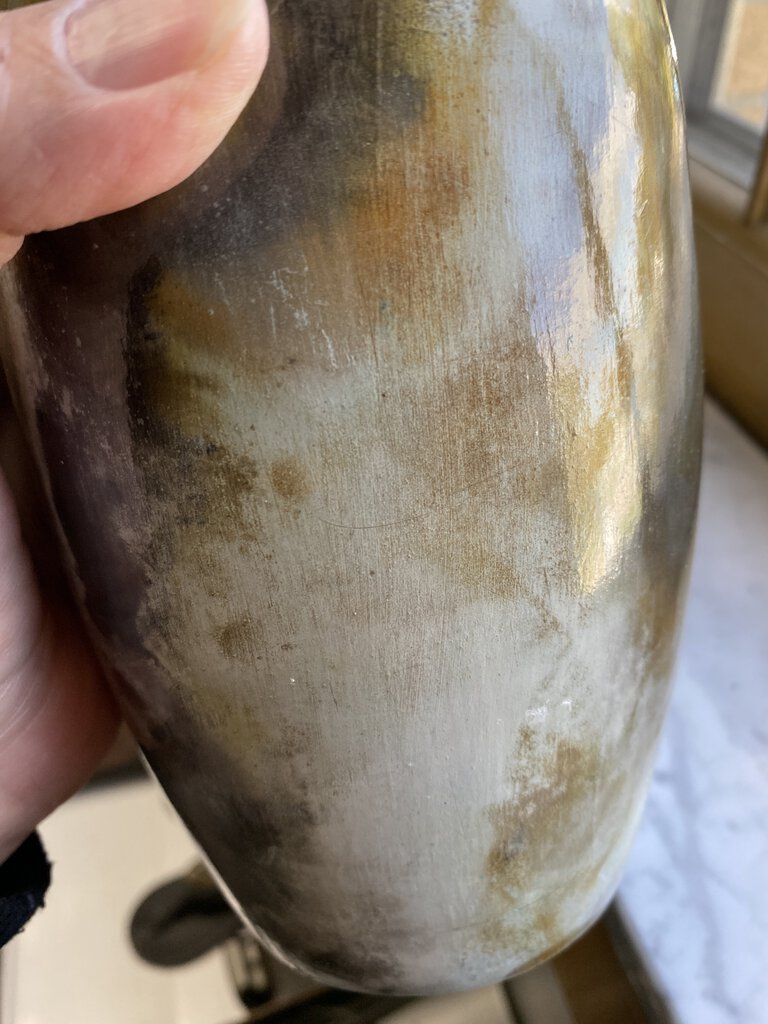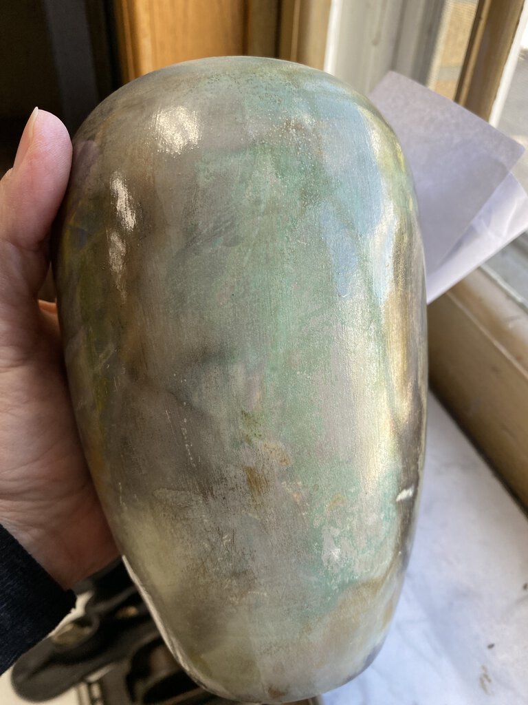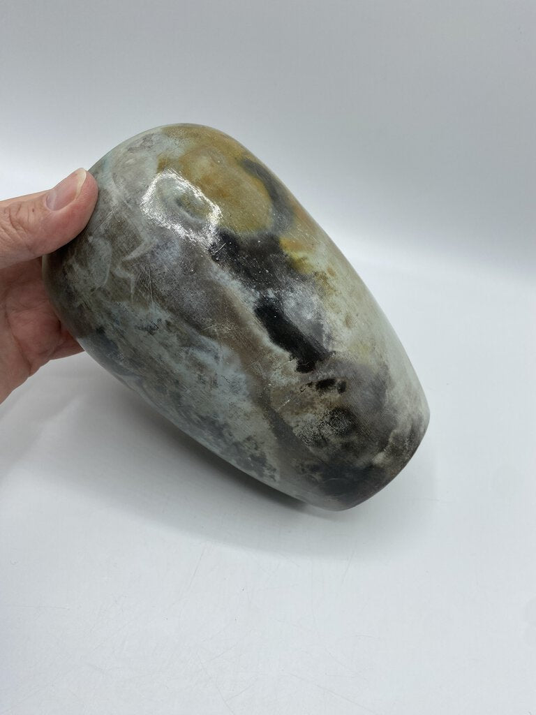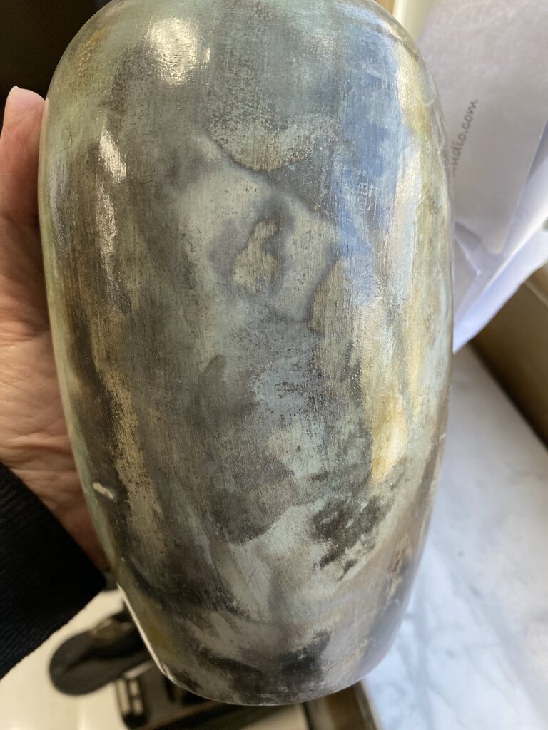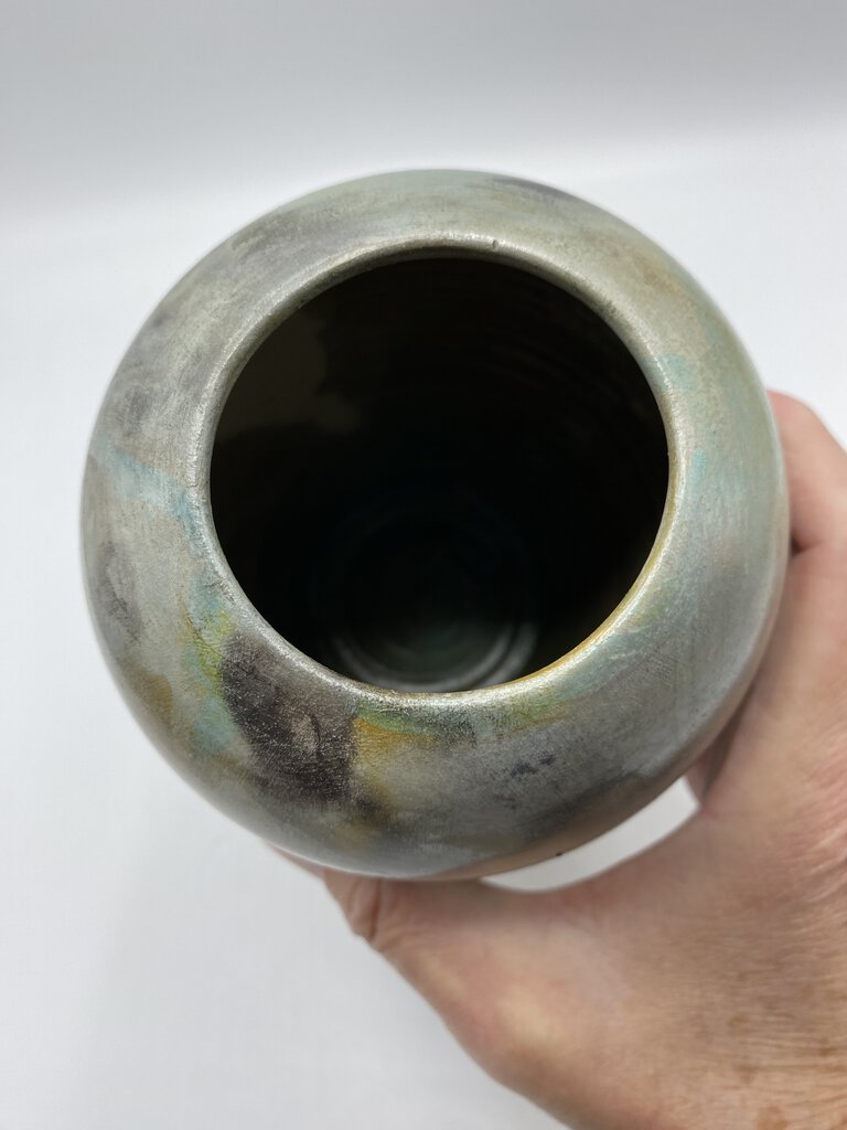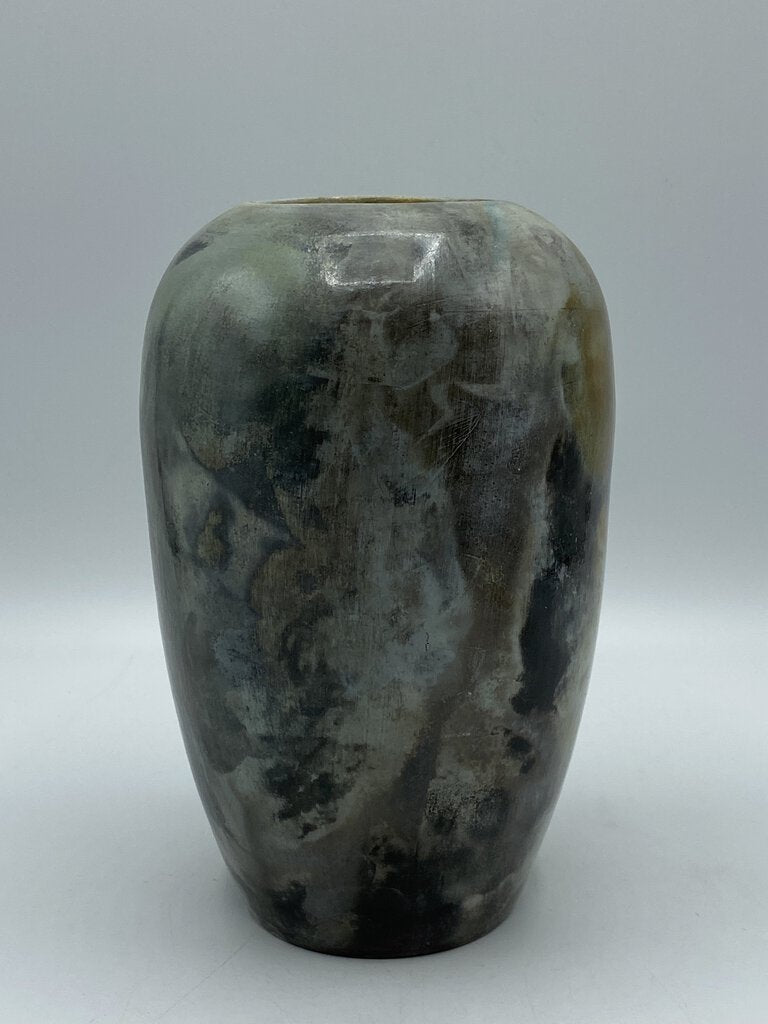 - Item: What a beautiful piece of art pottery from Fennville, MI artist Dawn Soltysiak. The piece features a smooth finish a multi colored glaze with dark, smoky black areas. Brush strokes in the glaze ad visual texture. The vase is simply beautiful!