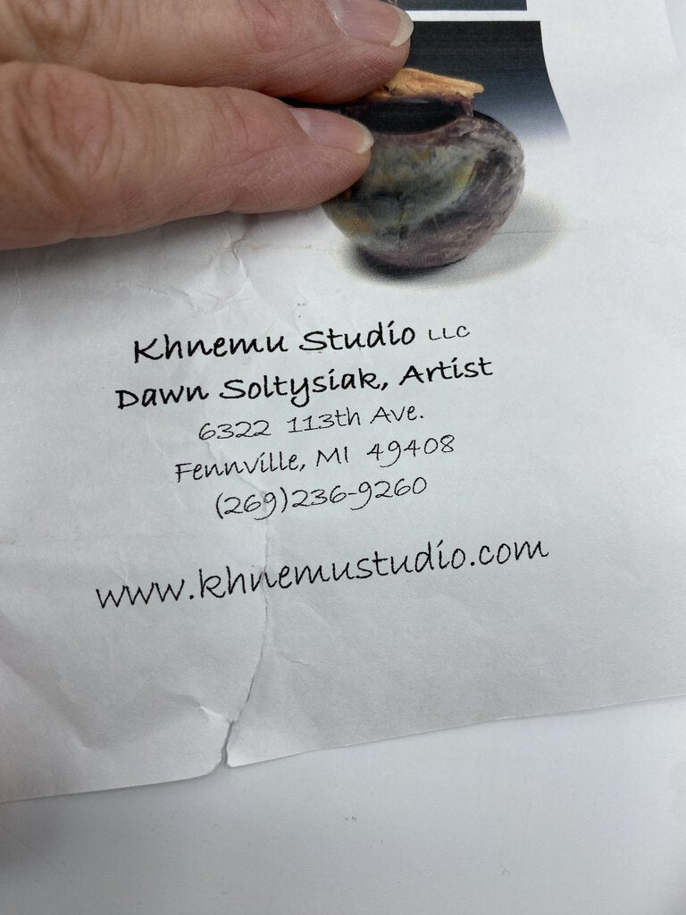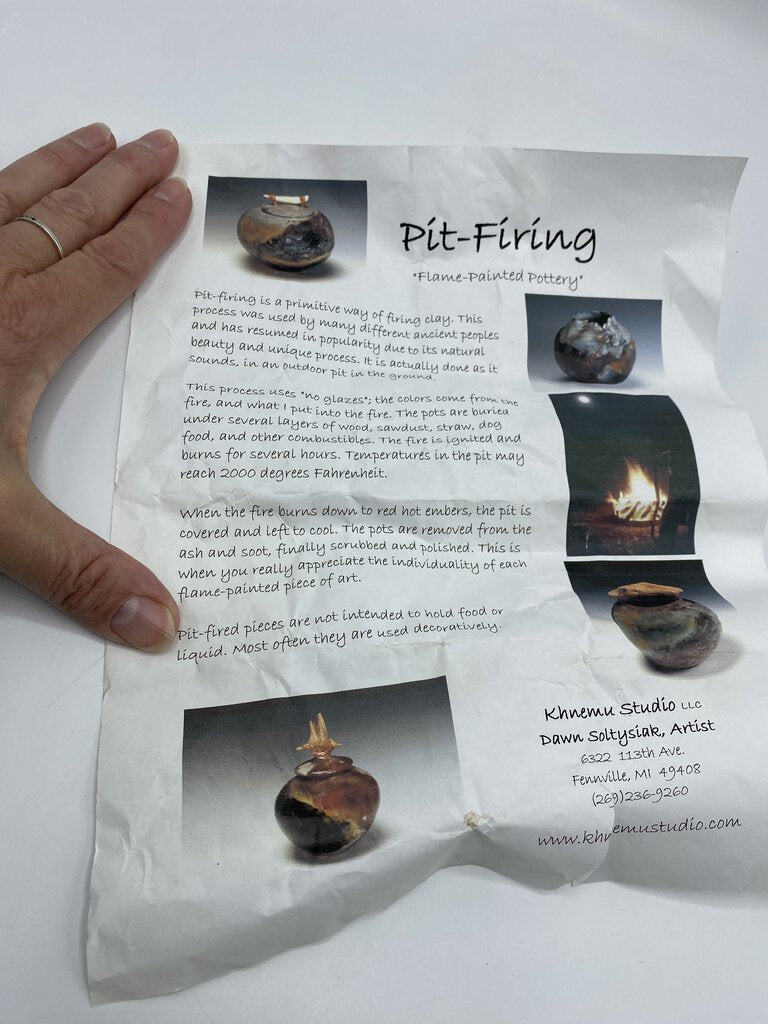 Khnemu Studio Pit Fired Vase Artist Signed Dawn Soltysiak /rw