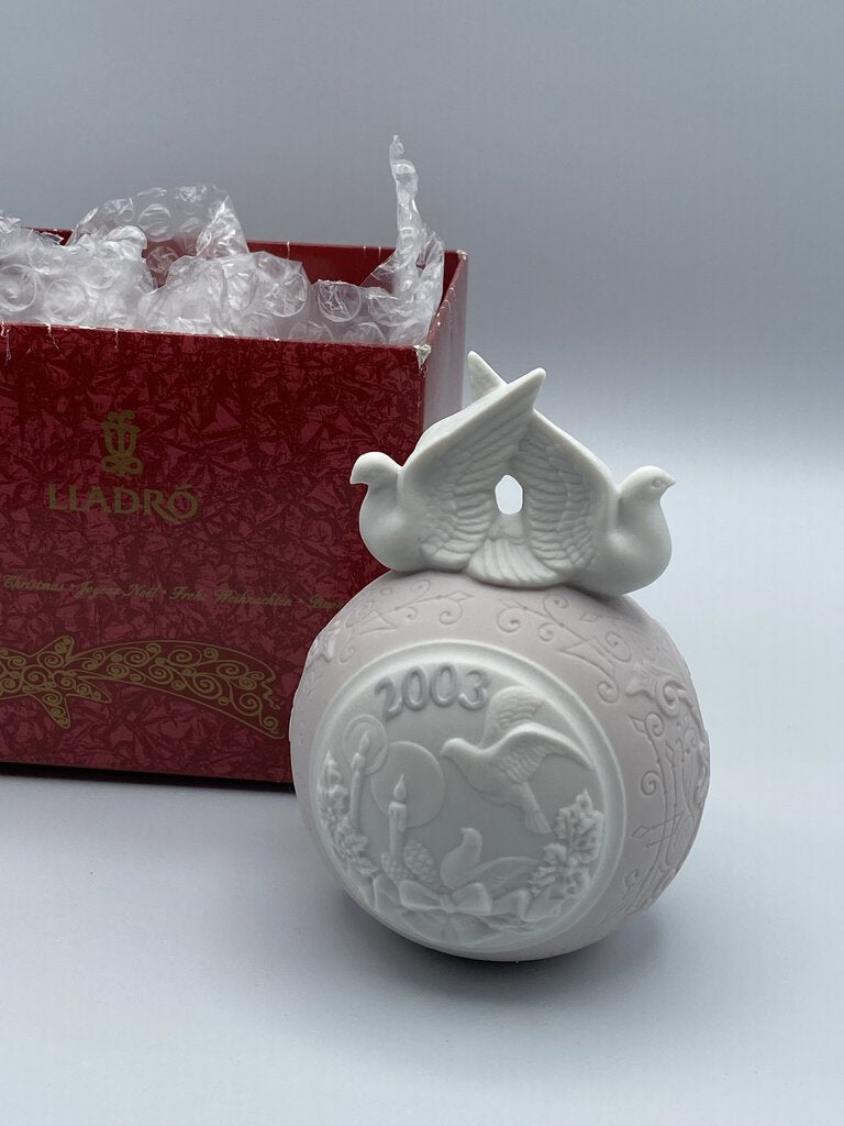 Lladro 2003 Pink Turtle Doves Christmas Ball Ornament /ro
