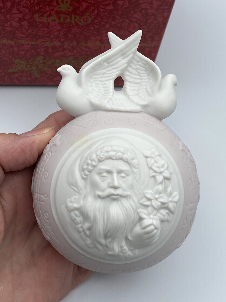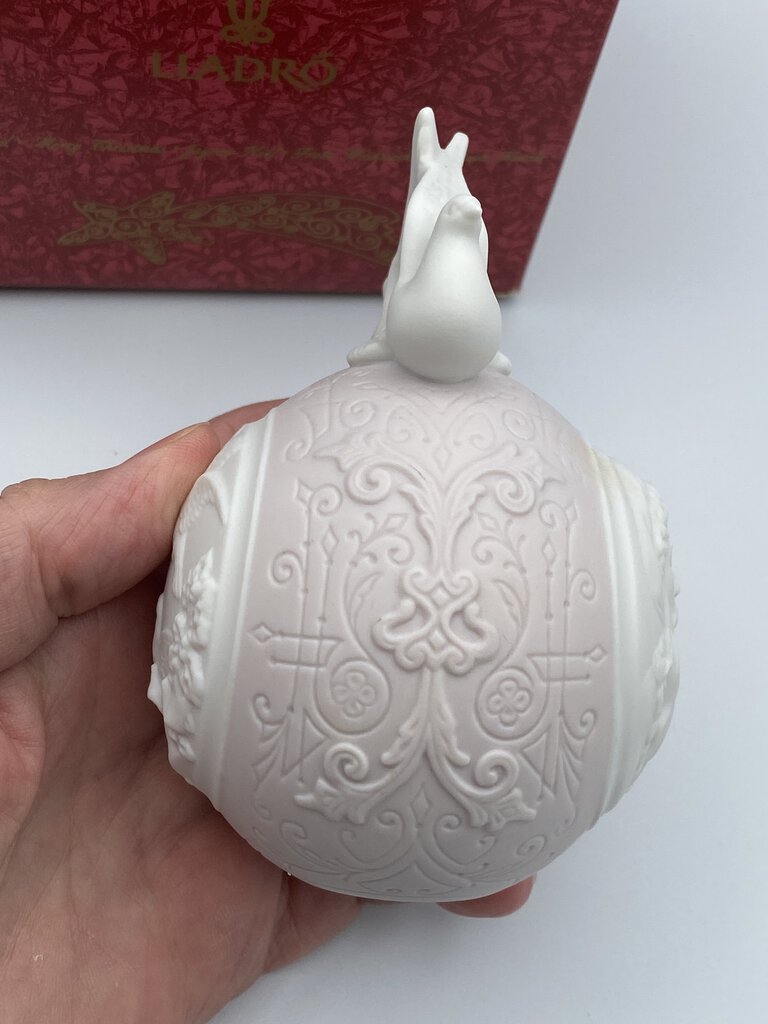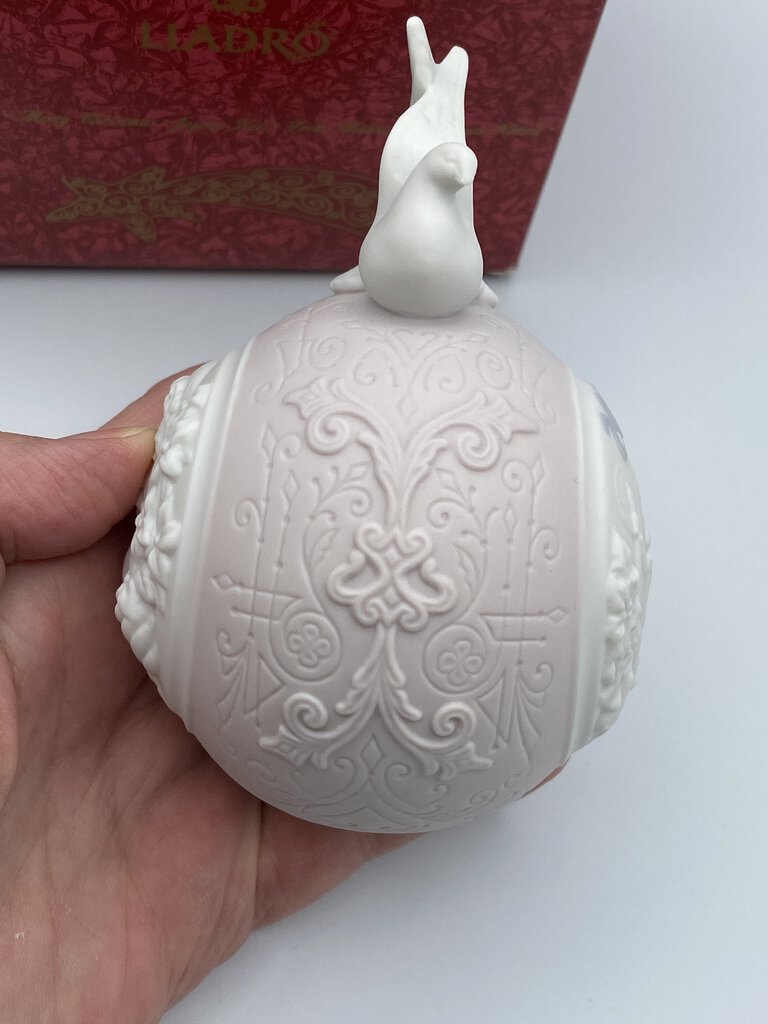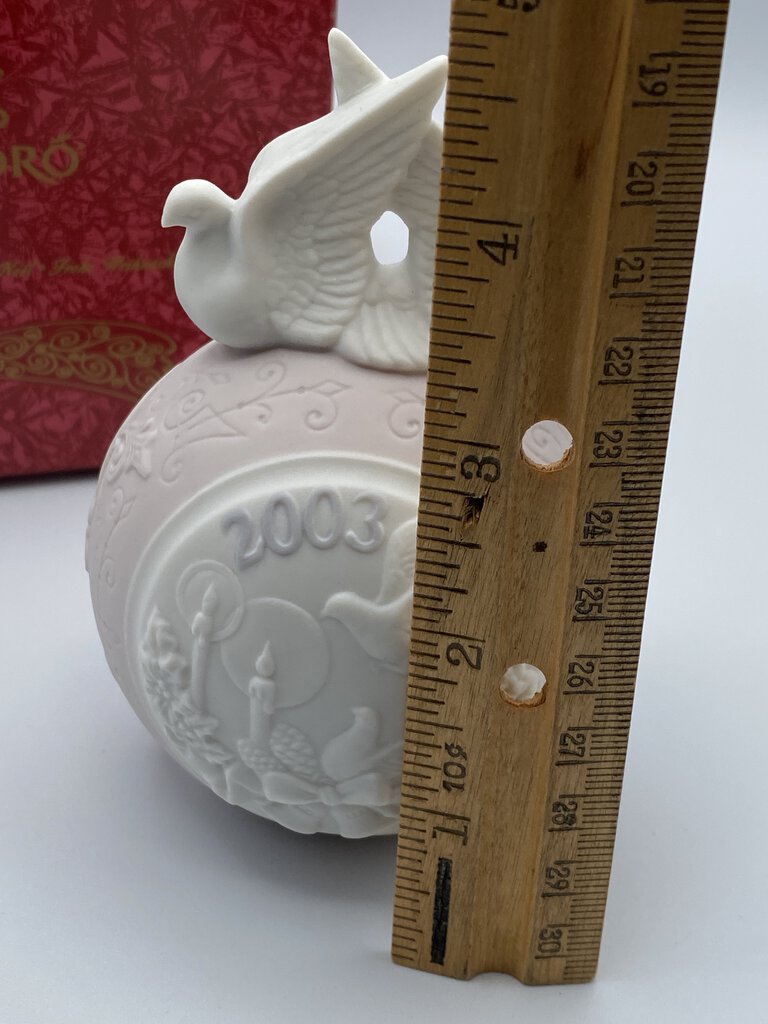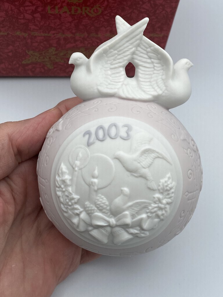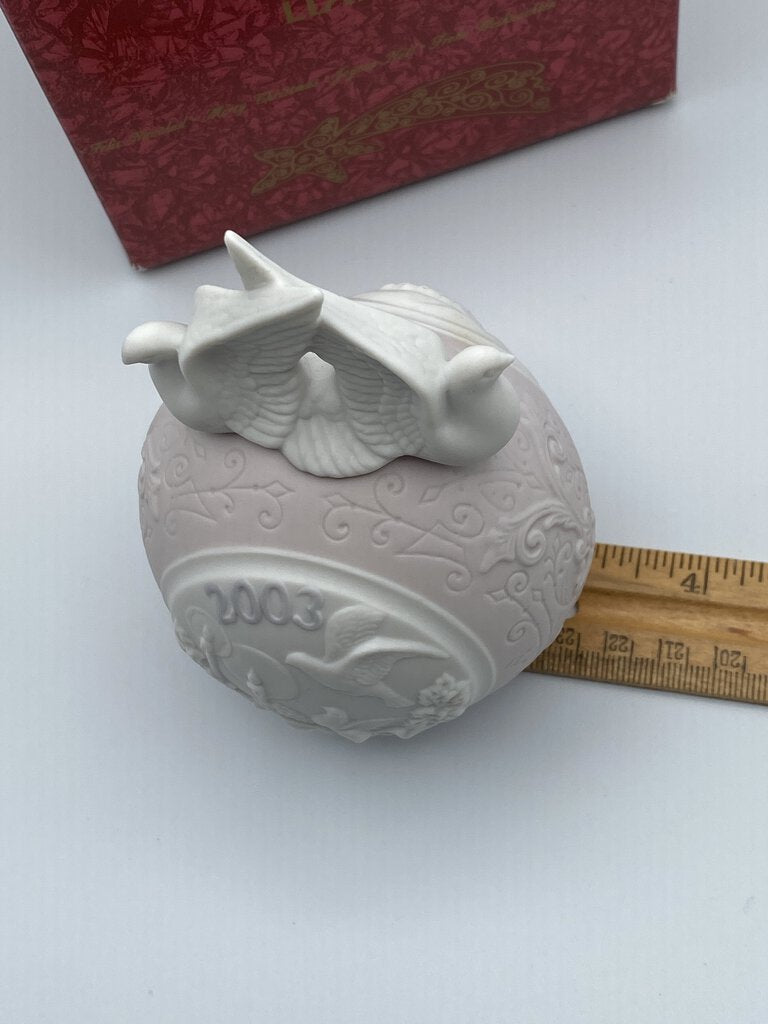 Lladro 2003 Pink Turtle Doves Christmas Ball/Ornament signed on bottom. No damage found. 4.5” tall 3” in diameter.
