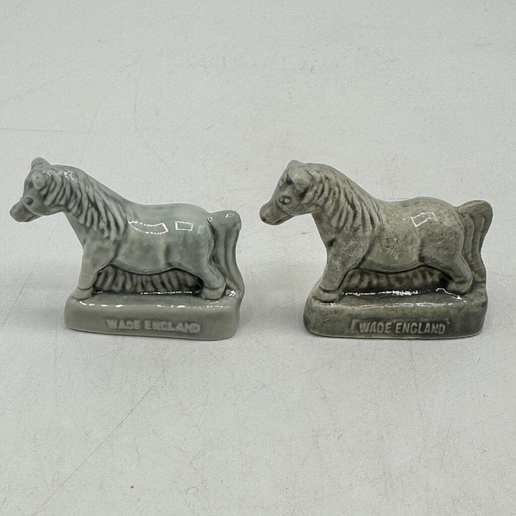 Charming lot of 24 Wade Whimsies ceramic animal figurines, made in England.These small collectible figures were first introduced in 1954 and have been an offering of Red Red Rose Tea since 1967. Our lot includes elephants, horses, bunnies and more. There are duplicates but most of those have a slight variation in glaze color. The figurines are in very good condition without major chips, or cracks.