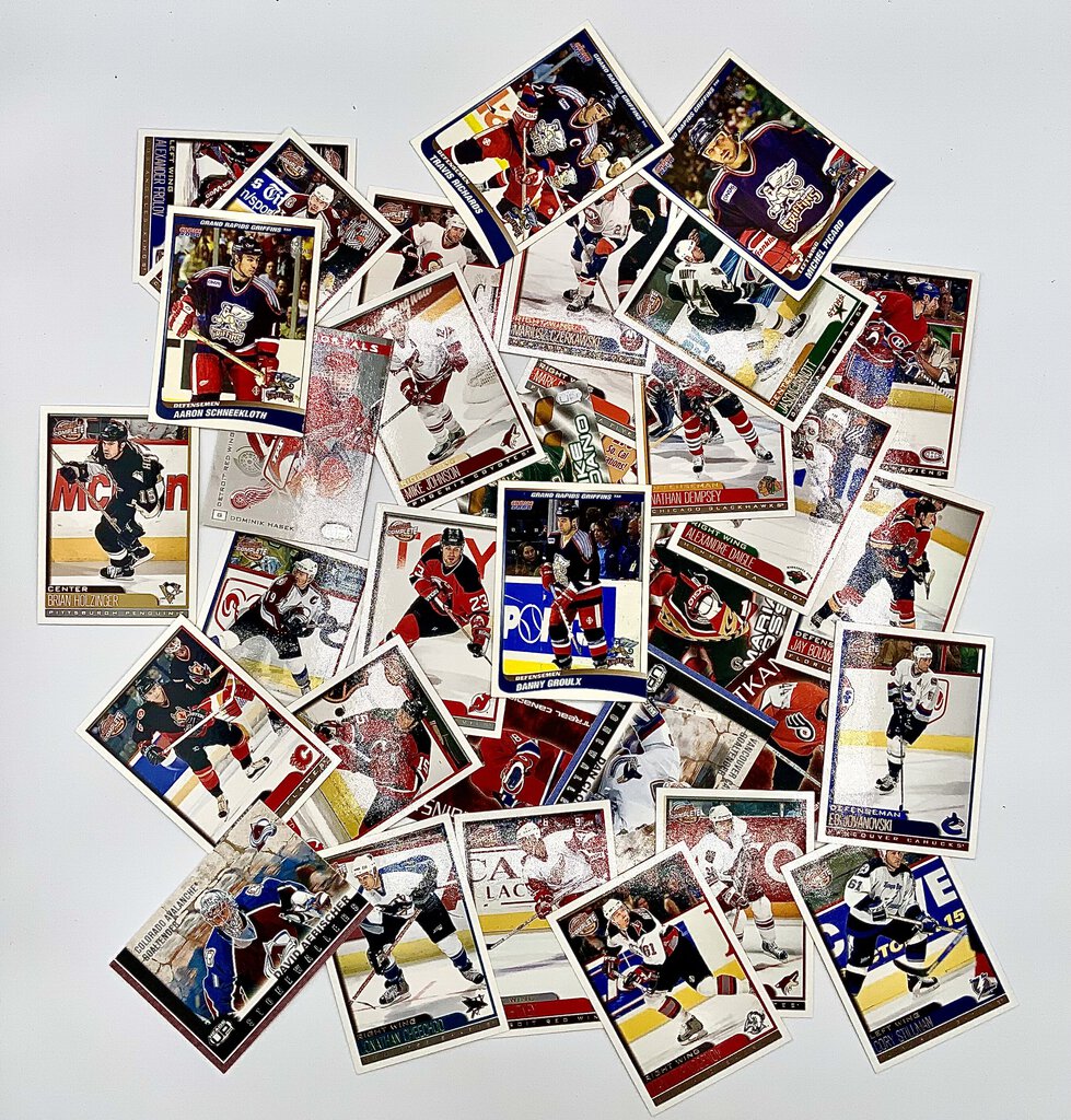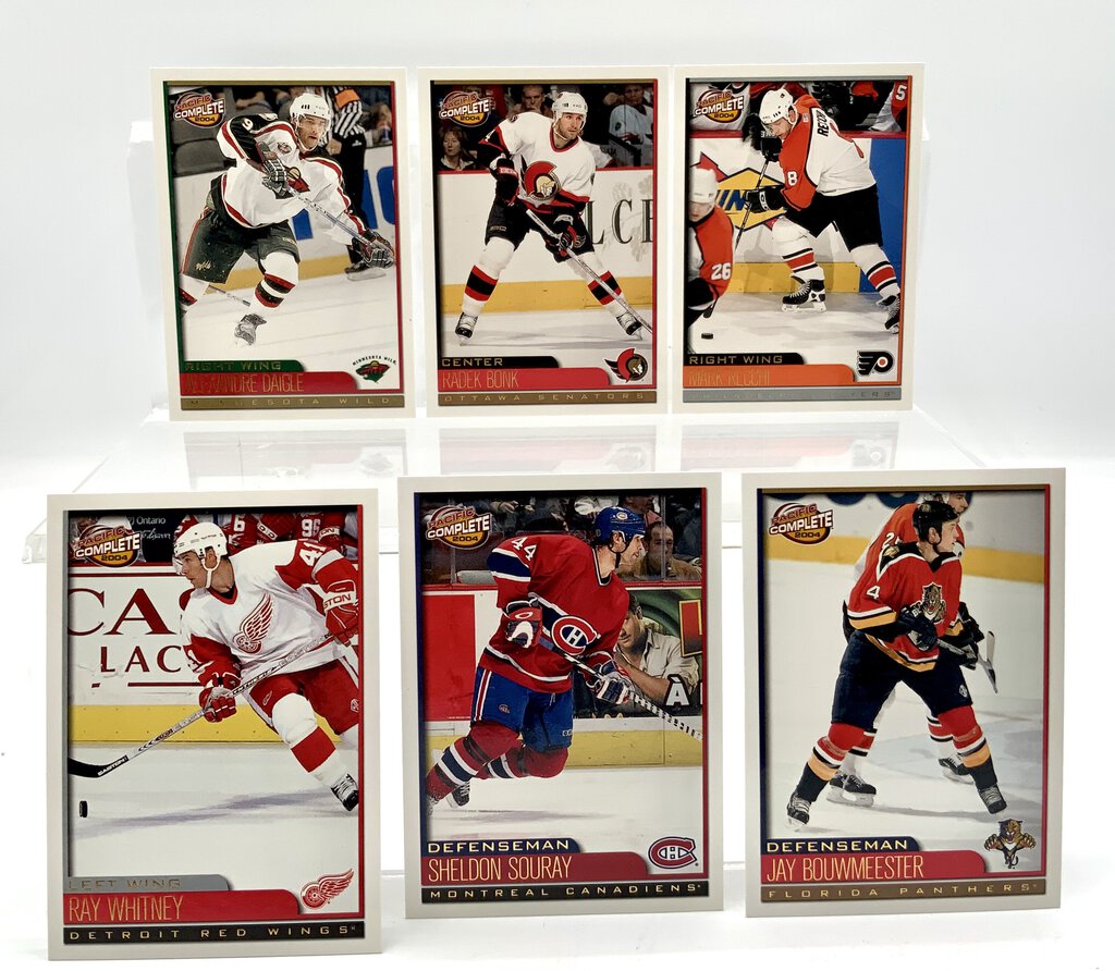 Amazing lot of Pacific Complete 2004 hockey trading cards. This set includes 33 cards featuring players from the National Hockey League (NHL). These sports trading cards are a must-have for any ice hockey fan and collector. With a variety of players and positions, this lot is perfect for expanding your card collection. The cards are in very good condition. Each card measures H 3 1/2” x W 2 1/2” x D 1/32 Please review all photos carefully. Estate item. Condition is preowned. |