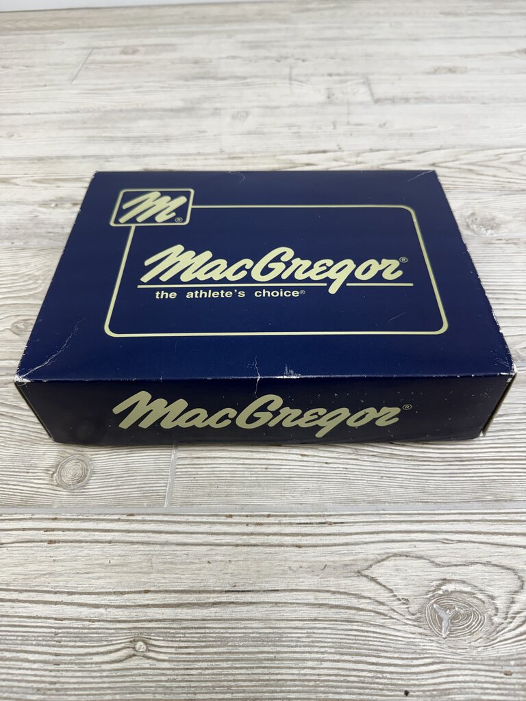 MacGregor Baseballs set of 9 new in packaging and 3 are used. Twelve balls total. Model 76C Commerce Little League. TY1212, 11648356. Cushioned Cork Center, Yarn Wound Core, 9 in. 5 oz. Full grain leather cover RS-T, China.