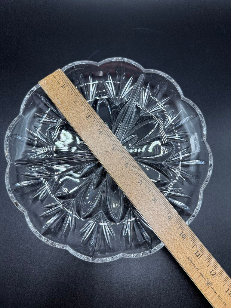 Marquis Waterford Crystal 3 part divided serving dish in Canterbury pattern. Measures 10” in diameter and 1.5” tall edge. Etched hallmark on bottom and original sticker. Made in Germany. No chips, cracks or cloudiness, just sparkle!