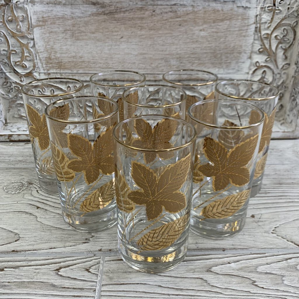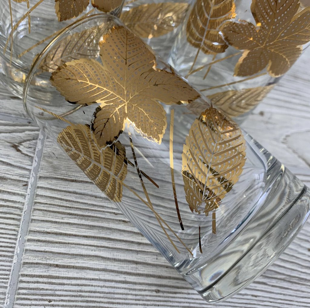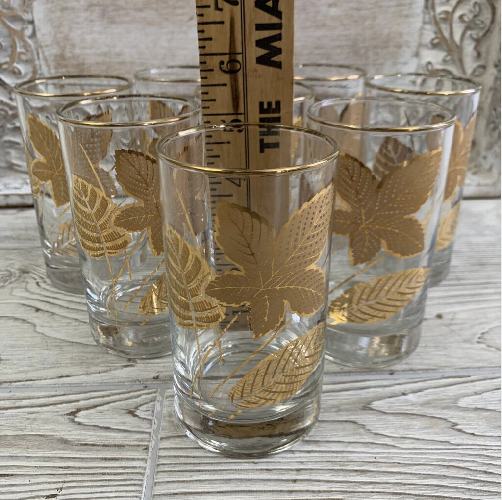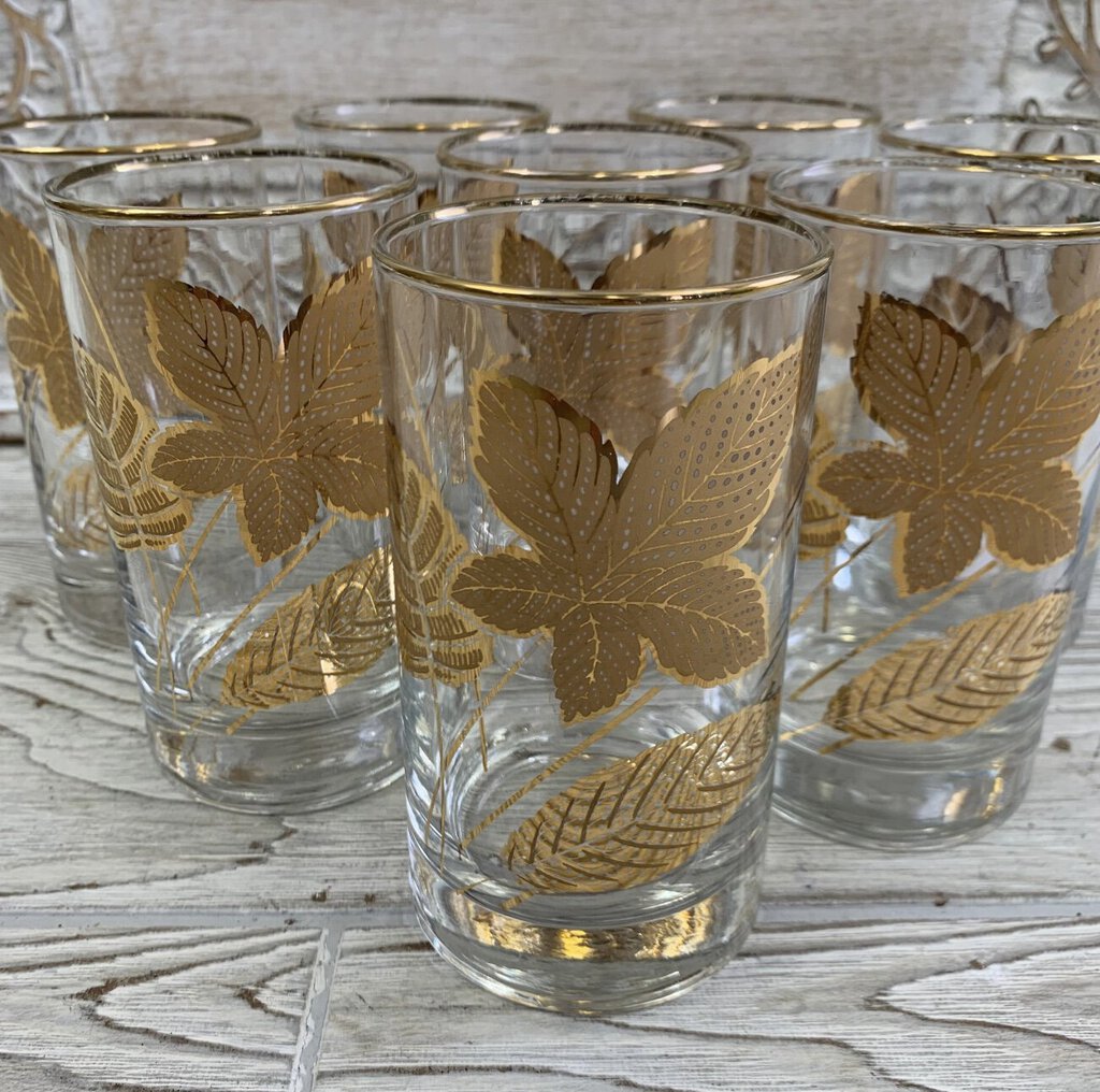 MCM Libbey Gold Leaf Highball Glasses/Tumblers Set of 8 /cb