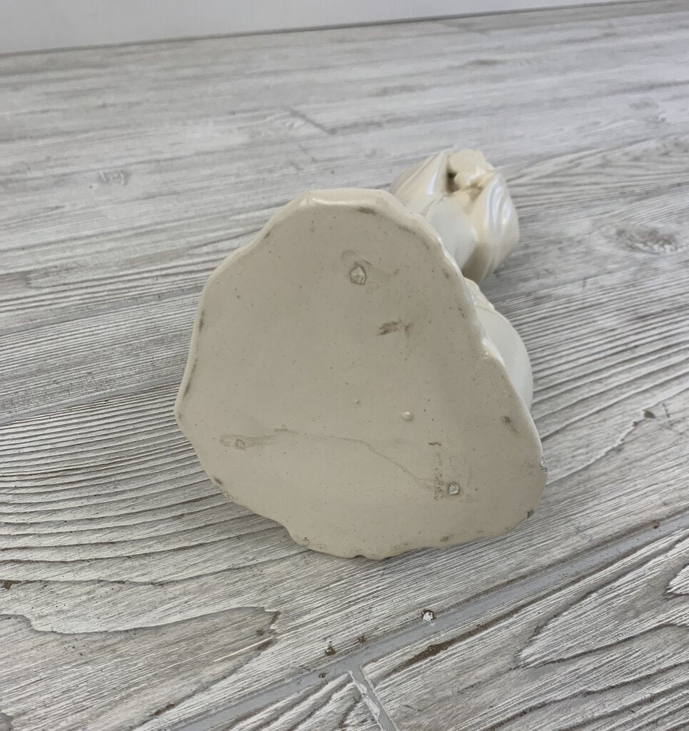 Beautiful figural piece of bisque-toned pottery depicting The Virgin Mary holding Baby Jesus. The piece has a feeling of calm grace to it, and would be stunning used as a planter or vase for flowers.