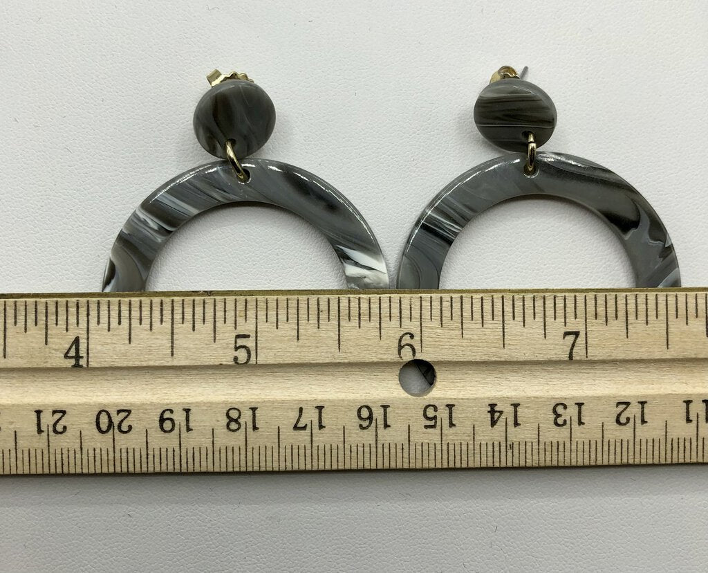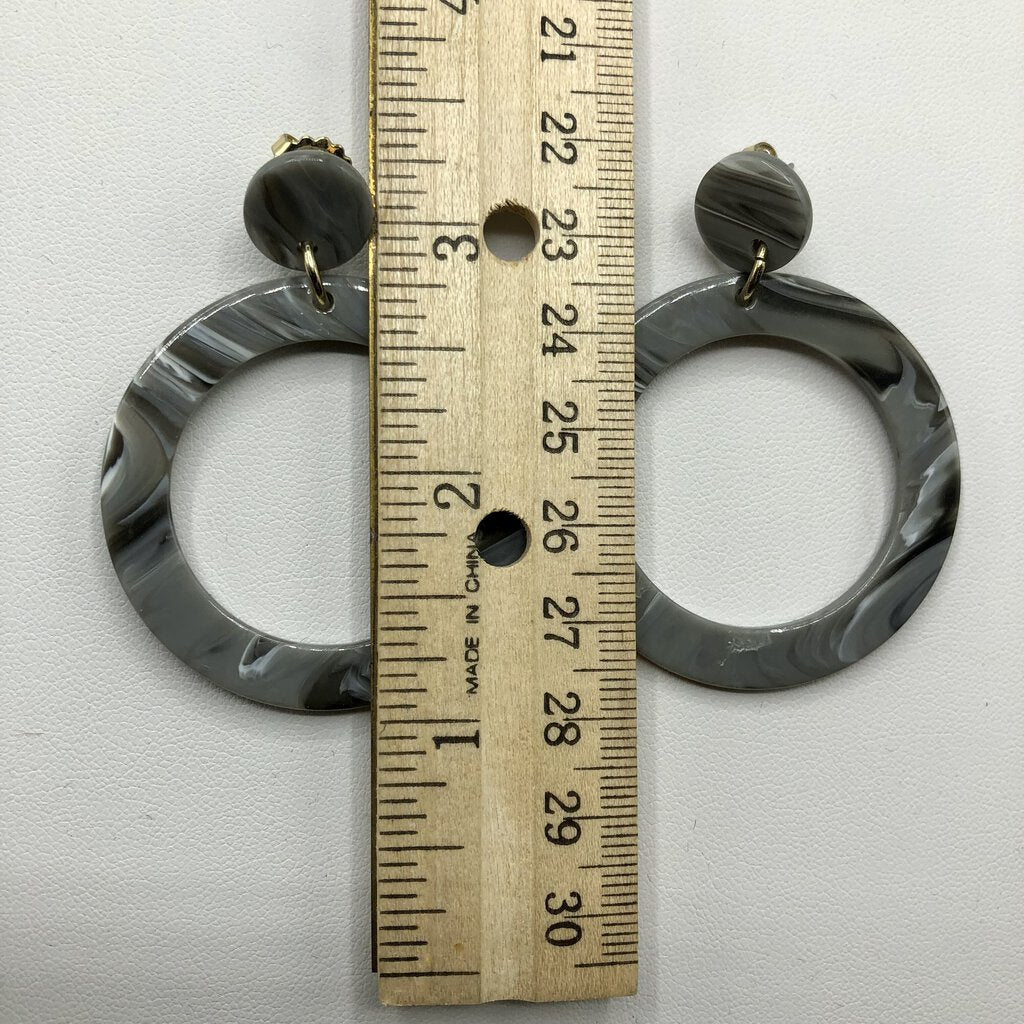 Each dangles just over 2” from piercing. Diameter of large circle is 1 3/4”.