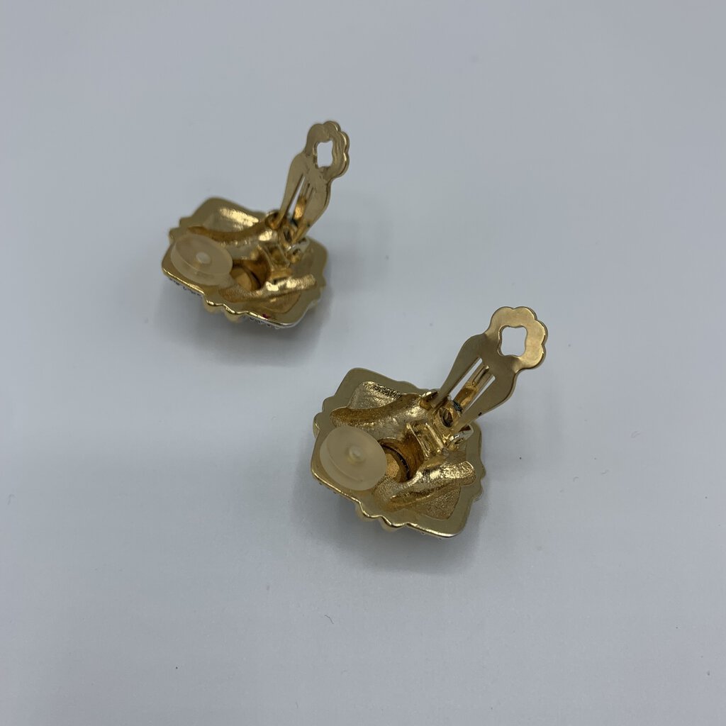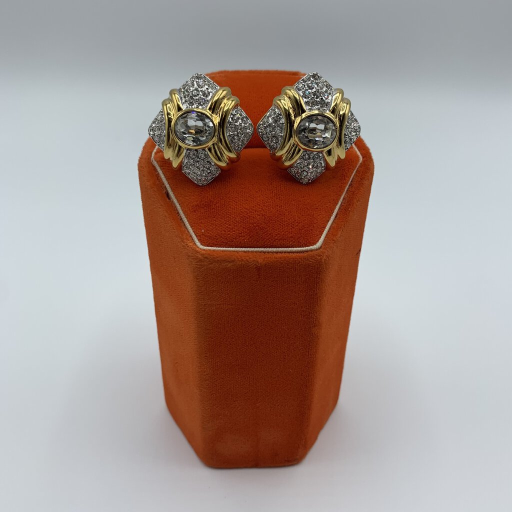 Gorgeous pavé rhinestone clip-on earrings made for the iconic Jacobson’s Department Store. The clip-ons are a paddle-back style and they have small cushions on them for ear comfort. These earrings will be perfect for the events in your life. They have absolutely beautiful sparkle!