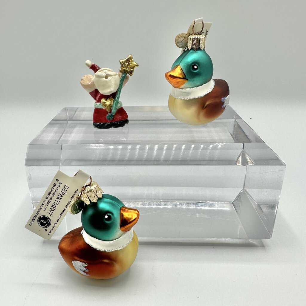 2 Department 56 Blown Glass Mallard Duck & 1 Midwest Of Cannon Falls Santa w/Star Ornaments /cb