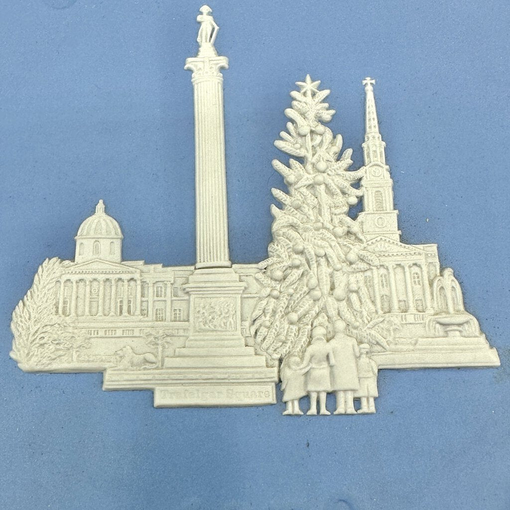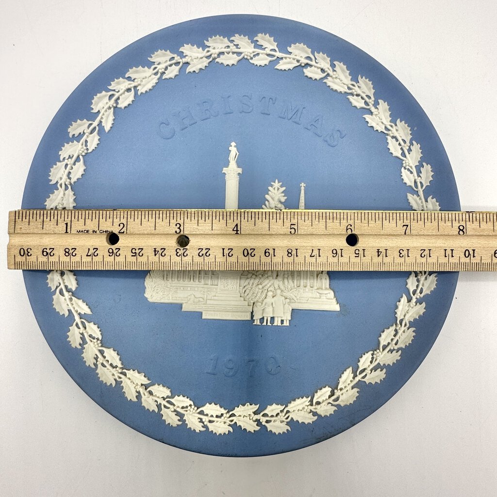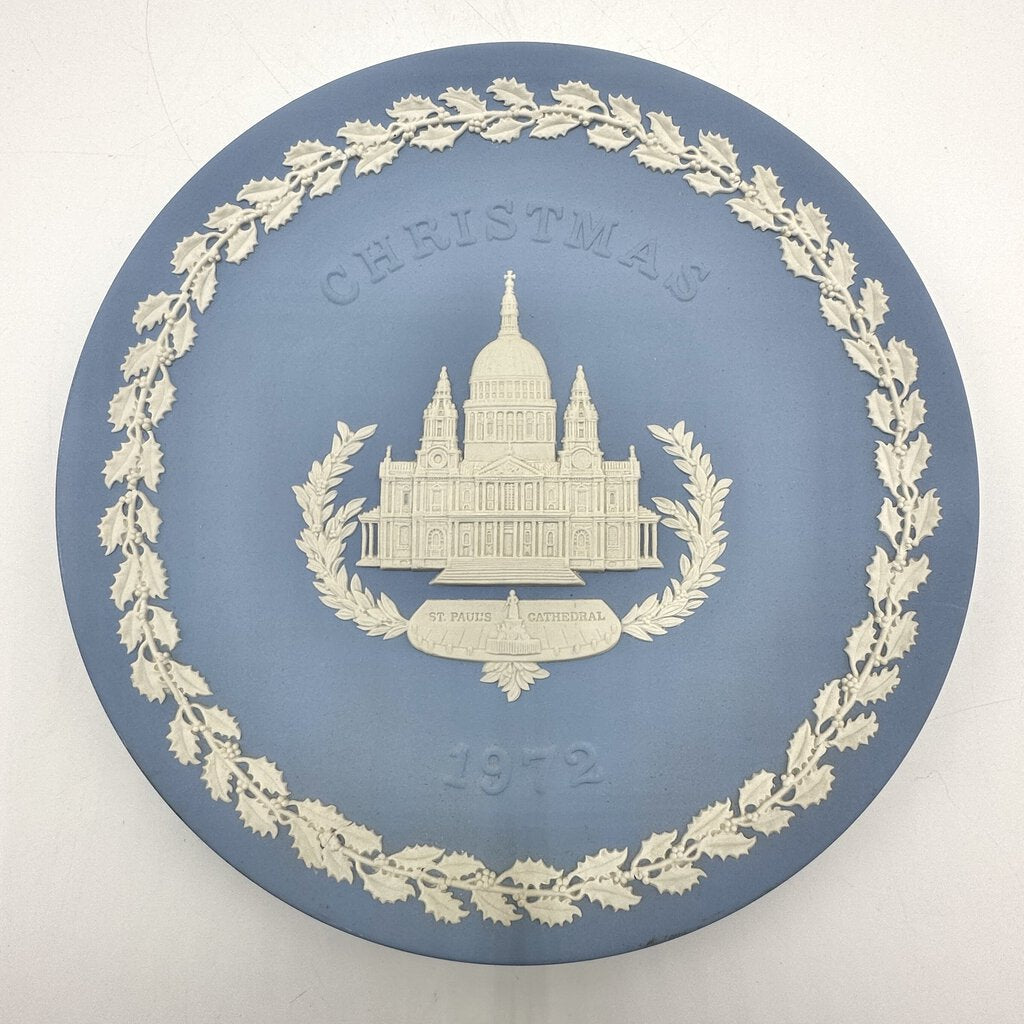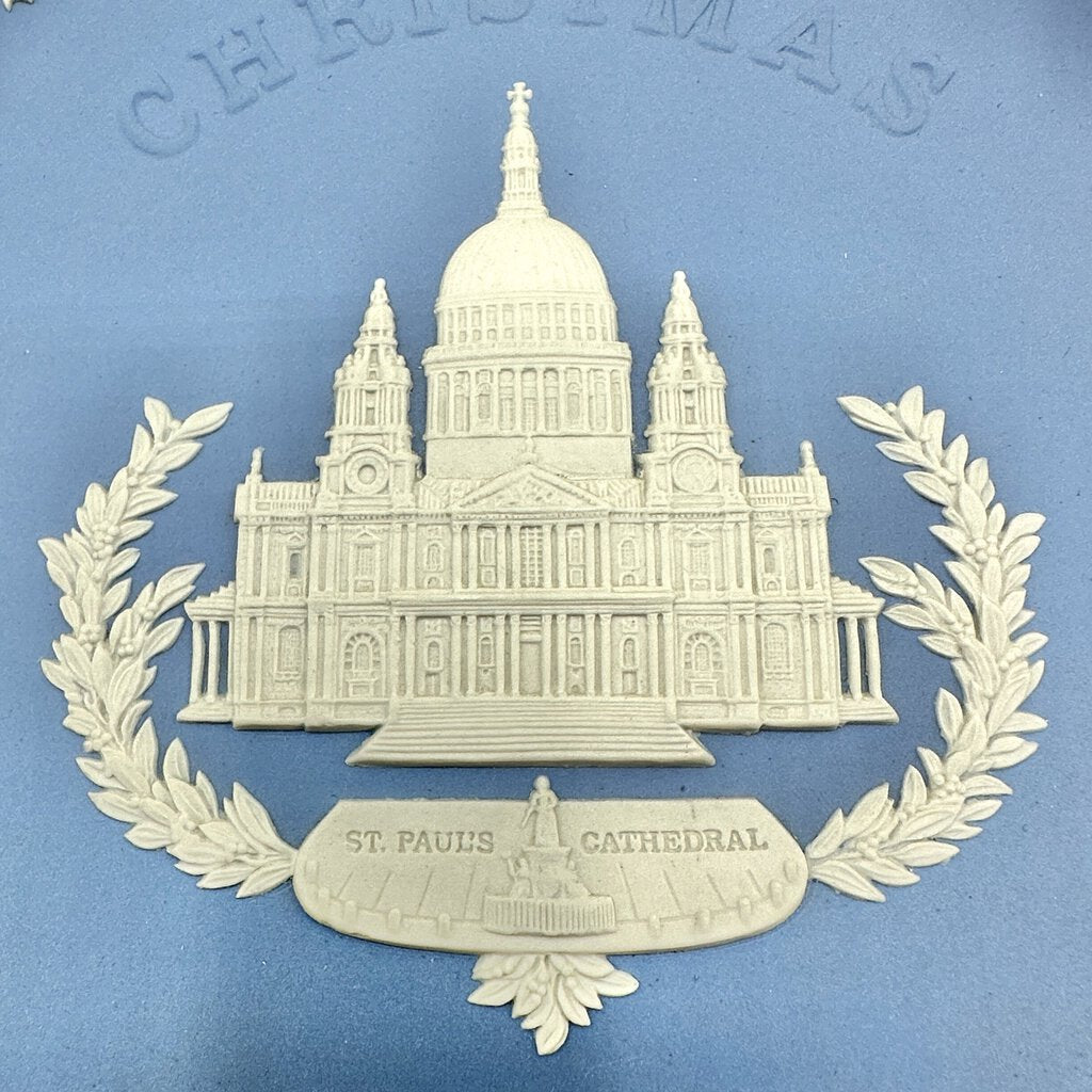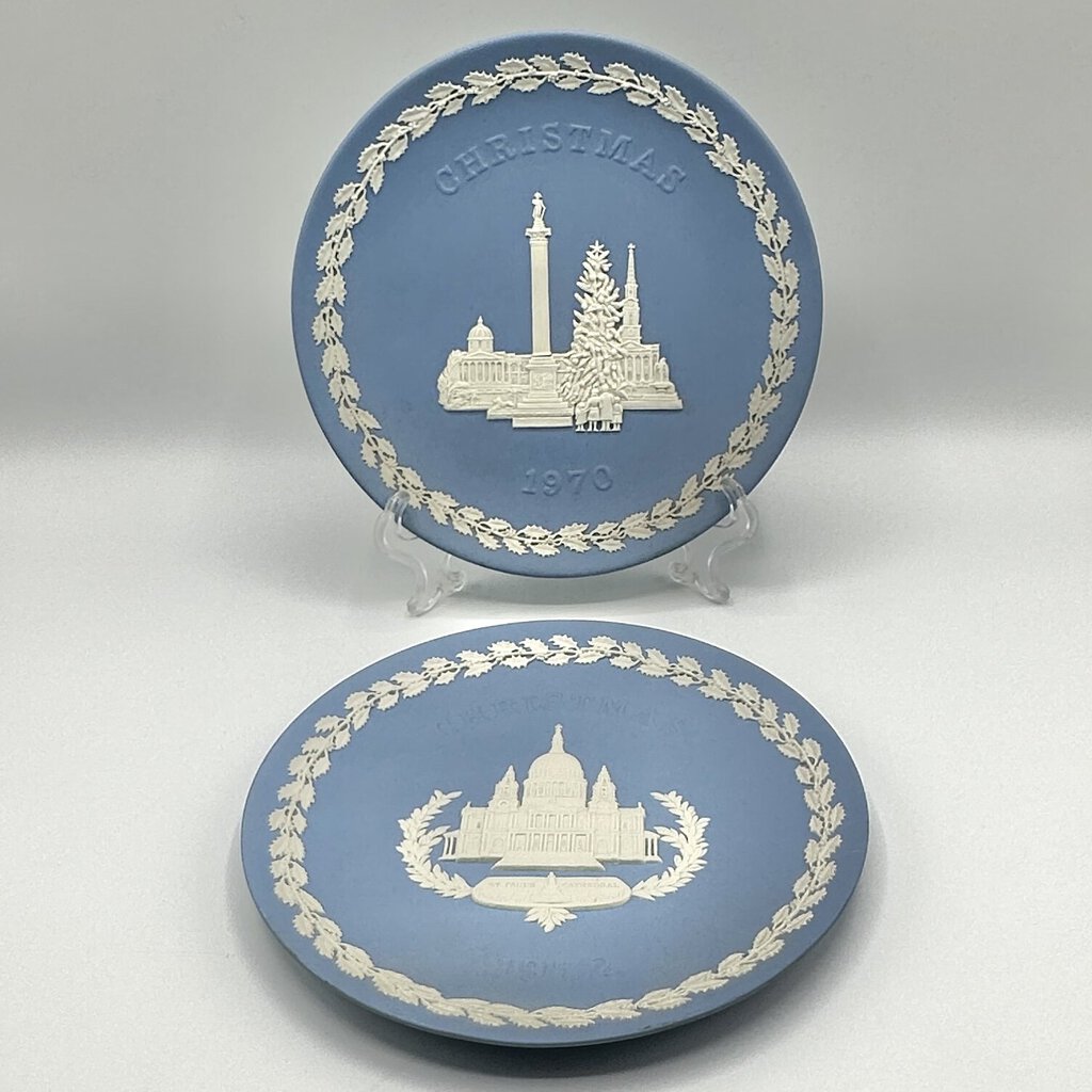 1970 and 1972 Wedgwood Christmas Jasperware Collector Plates. Made in England. The 1970s plate features a lovely detailed image of Trafalgar Square, London with a big Christmas tree. The 1972 plate has a no less lovely and detailed depiction of St. Paul’s Cathedral, London in the center. Both plates have an 8 inch diameter and are in very good vintage condition, no chips, cracks or repairs. Please see photos for details.
